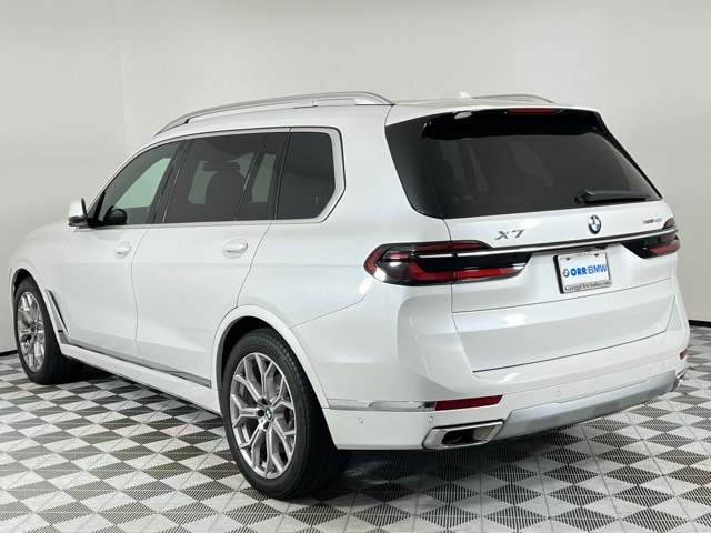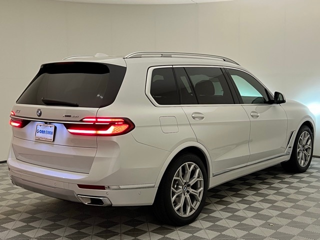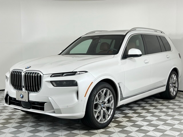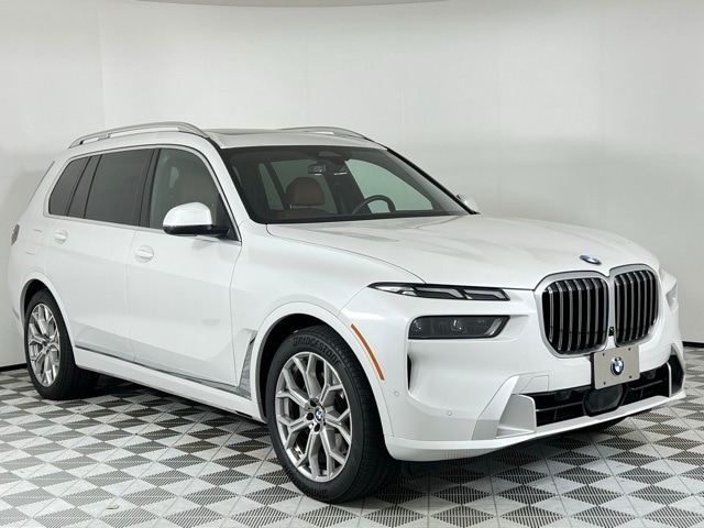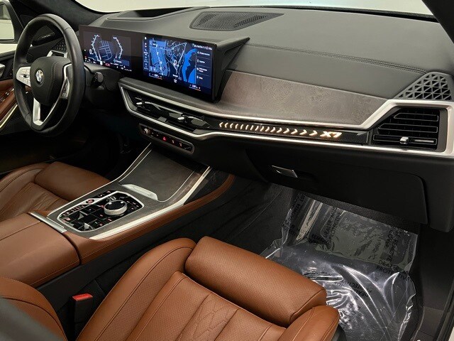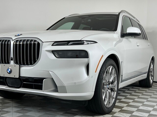 **2023 BMW X7 XDRIVE40I IN WHITE METALLIC OFFERS LUXURY AND COMMANDING PRESENCE WITH AWD CAPABILITY TARTUFO INTERIOR EXUDES SOPHISTICATION AND COMFORT MAKING EVERY DRIVE A FIRST-CLASS EXPERIENCE IN THIS FLAGSHIP SUV**.