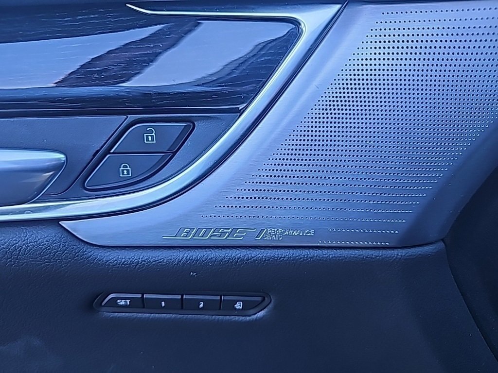 - Opens or closes when the system senses the key fob and the driver extends their foot under the left-hand side of the rear bumper over an image of the Cadillac Crest projected under the vehicle