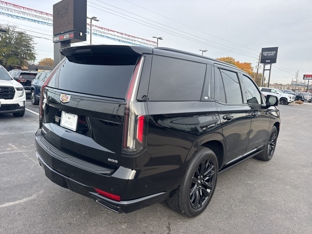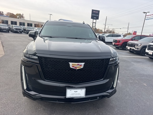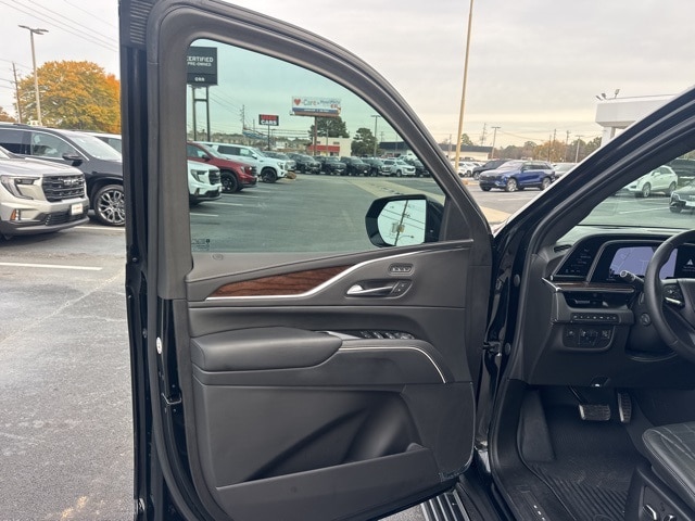 This 2022 Cadillac Escalade comes equipped with Preferred Equipment Group 1SH (Adaptive Cruise Control, AKG Studio Reference 36-Speaker Audio System, Automatic Seat Belt Tightening, Automatic Stop/Start, Body-Color Door Handles, Door Lock & Latch Shields, Electronic Limited-Slip Differential, Enhanced Automatic Emergency Braking, Enhanced Automatic Parking Assist, Floor Console w/Covered Storage, Glass Breakage Sensor, Hitch Guidance w/Hitch View, Integrated Trailer Brake Controller, Platinum Interior Trim, Power Panoramic Tilt-Sliding Sunroof, Rear Camera Mirror, Rear Camera Mirror Washer, Rear Cross Traffic Alert, Rear Seat Entertainment System, Reconfigurable Full-Color Head-Up Display, Reverse Automatic Braking, Running Board Assist Steps, Smart Trailer Integration Indicator, Start/Stop System Disable Button, Theft-Deterrent Alarm System, Trailer Side Blind Zone Alert, Vehicle Inclination Sensor, Vehicle Interior Movement Sensor, and Front Auxiliary 12-volt Power Outlet), Touring Package (Air Ride Adaptive Suspension, Illuminating Front & Rear Sill Plates, and Soft Closing Front & Rear Doors), Cadillac Certified Pre-Owned Certified, 4WD, Jet Black Leather, Navigation System, 16.9" Diagonal OLED Infotainment Screen, 2-Presets Memory For Driver Seat Adjuster, 3.23 Axle Ratio, 3rd row seats: split-bench, 4-Way Power Driver Lumbar Seat Adjuster, 4-Way Power Front Passenger Lumbar Seat Adjuster, 4-Wheel Disc Brakes, 8-Way Power Driver Seat Adjuster, 8-Way Power Front Passenger Seat Adjuster, A/V remote, ABS brakes, Adaptive suspension, Air Conditioning, Alloy wheels, AM/FM radio: SiriusXM with 360L, Apple CarPlay/Android Auto, Audio memory, Auto High-beam Headlights, Auto tilt-away steering wheel, Auto-dimming door mirrors, Auto-dimming Rear-View mirror, Automatic temperature control, Brake assist, Bumpers: body-color, Compass, Cooled Console w/Covered Storage, Delay-off headlights, Door auto-latch, Driver door bin, Driver vanity mirror, Dual front impact airbags, Dual front side impact airbags, Electronic Stability Control, Emergency communication system: OnStar and Cadillac connected services capable, Four wheel independent suspension, Front 6-Piston Brembo Brake Upgrade (LPO), Front anti-roll bar, Front Bucket Seats, Front Center Armrest w/Storage, Front dual zone A/C, Front License Plate Bracket, Front reading lights, Front Reflective Window Shade (LPO), Full Semi-Aniline Leather Seats, Fully automatic headlights, Garage door transmitter, Genuine wood console insert, Genuine wood dashboard insert, Genuine wood door panel insert, HD Radio, Headphones, Heads-Up Display, Heated & Ventilated Driver & Front Passenger Seats, Heated door mirrors, Heated Driver & Front Passenger Seats, Heated front seats, Heated rear seats, Heated steering wheel, Illuminated entry, Leather steering wheel, Low tire pressure warning, Magnetic Ride Control Suspension, Memory seat, Night Vision, Not Equipped w/2nd Row Express-Up/Down Windows, Not Equipped w/Steering Column Lock, Not Equipped w/Super Cruise, Occupant sensing airbag, Outside temperature display, Overhead airbag, Overhead console, Panic alarm, Passenger door bin, Passenger vanity mirror, Power door mirrors, Power driver seat, Power Liftgate, Power Lumbar Massage Driver Seat, Power Lumbar Massage Front Passenger Seat, Power moonroof, Power passenger seat, Power steering, Power windows, Power-Retractable Assist Steps, Radio data system, Radio: AM/FM/SiriusXM w/Navigation, Rain sensing wipers, Rear air conditioning, Rear anti-roll bar, Rear audio controls, Rear Fold Flat Cargo Organizer (LPO), Rear reading lights, Rear window defroster, Rear window wiper, Remote keyless entry, Roof rack: rails only, Security system, SiriusXM w/360L, Speed control, Split folding rear seat, Spoiler, Sport Pedal Cover Kit (LPO), Steering wheel memory, Steering wheel mounted audio controls, Super Cruise, Tachometer, Teen Driver, Telescoping steering wheel, Tilt steering wheel, Traction control, Trip computer, Tu