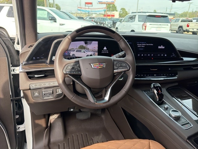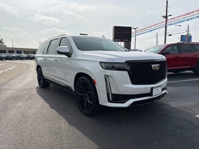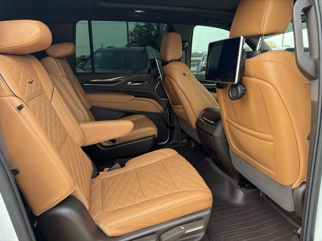 This 2023 Cadillac Escalade ESV comes equipped with Preferred Equipment Group 1SC (Adaptive Cruise Control, AKG Studio 19-Speaker Audio System, Automatic Seat Belt Tightening, Body-Color Door Handles, Door Lock & Latch Shields, Electronic Limited-Slip Differential, Enhanced Automatic Emergency Braking, Enhanced Automatic Parking Assist, Glass Breakage Sensor, Heated & Ventilated Driver & Front Passenger Seats, Hitch Guidance w/Hitch View, Integrated Trailer Brake Controller, Power Panoramic Tilt-Sliding Sunroof, Rear Camera Mirror, Rear Camera Mirror Washer, Rear Cross Traffic Alert, Reconfigurable Full-Color Head-Up Display, Reverse Automatic Braking, Running Board Assist Steps, Smart Trailer Integration Indicator, Theft-Deterrent Alarm System, Trailer Side Blind Zone Alert, Vehicle Inclination Sensor, and Vehicle Interior Movement Sensor), Touring Package (Air Ride Adaptive Suspension, Illuminating Front & Rear Sill Plates, and Soft Closing Front & Rear Doors), Cadillac Certified Pre-Owned Certified, AWD, Navigation System, 16.9" Diagonal OLED Infotainment Screen, 19 Speakers, 2-Presets Memory For Driver Seat Adjuster, 3 Years of OnStar & Connected Services Plan, 3.23 Axle Ratio, 3rd row seats: split-bench, 4-Way Power Driver Lumbar Seat Adjuster, 4-Way Power Front Passenger Lumbar Seat Adjuster, 4-Wheel Disc Brakes, 8-Way Power Driver Seat Adjuster, 8-Way Power Front Passenger Seat Adjuster, ABS brakes, Adaptive suspension, Air Conditioning, Alloy wheels, AM/FM radio: SiriusXM with 360L, Apple CarPlay/Android Auto, Audio memory, Auto High-beam Headlights, Auto tilt-away steering wheel, Auto-dimming door mirrors, Automatic temperature control, Brake assist, Bumpers: body-color, Compass, Delay-off headlights, Driver door bin, Driver vanity mirror, Dual front impact airbags, Dual front side impact airbags, Electronic Stability Control, Emergency communication system: OnStar and Cadillac connected services capable, Exterior Parking Camera Rear, Four wheel independent suspension, Front anti-roll bar, Front Bucket Seats, Front Center Armrest w/Storage, Front dual zone A/C, Front License Plate Bracket, Front reading lights, Fully automatic headlights, Garage door transmitter, HD Radio, Heads-Up Display, Heated door mirrors, Heated Driver & Front Passenger Seats, Heated front seats, Heated rear seats, Heated steering wheel, Illuminated entry, Leather Seating Surfaces w/Precision Perf Inserts, Low tire pressure warning, Magnetic Ride Control Suspension, Memory seat, Night Vision, Not Equipped w/2nd Row Express-Up Window Control, Occupant sensing airbag, Outside temperature display, Overhead airbag, Overhead console, Panic alarm, Passenger door bin, Passenger vanity mirror, Power door mirrors, Power driver seat, Power Liftgate, Power moonroof, Power passenger seat, Power steering, Power windows, Power-Retractable Assist Steps, Radio data system, Radio: AM/FM w/Navigation, Rain sensing wipers, Rear air conditioning, Rear anti-roll bar, Rear reading lights, Rear window defroster, Rear window wiper, Remote keyless entry, Security system, SiriusXM w/360L, Speed control, Split folding rear seat, Spoiler, Steering wheel memory, Steering wheel mounted audio controls, Super Cruise, Tachometer, Teen Driver, Telescoping steering wheel, Tilt steering wheel, Traction control, Trip computer, Turn signal indicator mirrors, Variably intermittent wipers, Ventilated front seats, Voltmeter, Wheels: 22" 12-Spoke Polished Alloy, and Wireless Apple CarPlay/Wireless Android Auto. CARFAX One-Owner. Certified. Carfax no accidents, AWD, Adaptive Cruise Control, Air Ride Adaptive Suspension, AKG Studio 19-Speaker Audio System, Automatic Seat Belt Tightening, Body-Color Door Handles, Door Lock & Latch Shields, Electronic Limited-Slip Differential, Enhanced Automatic Emergency Braking, Enhanced Automatic Parking Assist, Glass Breakage Sensor, Heated & Ventilated Driver & Front Passenger Seats, Hitch Guidance w/Hitch View, Illuminating Front & Rear Sill Plates,