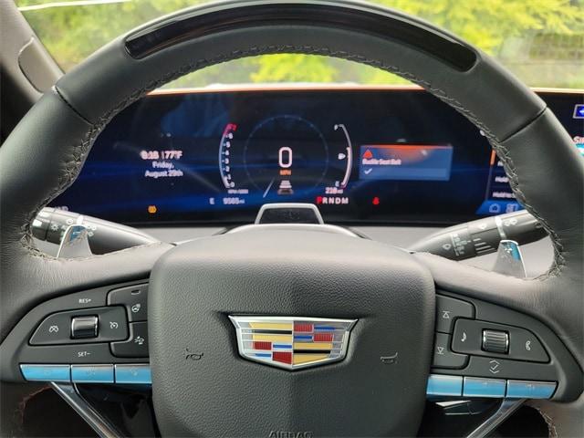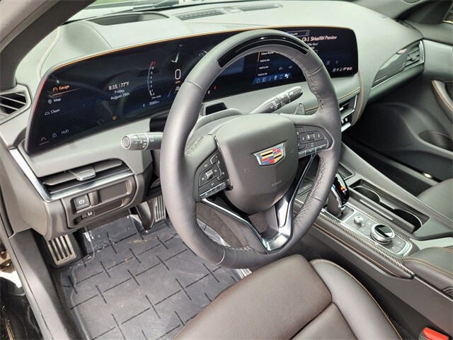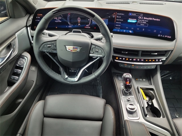 This 2025 Cadillac CT5 comes equipped with Preferred Equipment Group 1SE (LED Reflective Windshield Collision Alert), Red Accent Package (LPO) (Black Wheel Locks (LPO), Black Wheel Lug Nuts (LPO), Decals (LPO), Red Wheel Center Cap (LPO), Wheels: 20" Low Gloss Blk Alloy w/Red Accents (LPO), and Wheels: 20" Transit Steel), Sun & Sound Package (UltraView Dual Pane Sunroof), Technology Package (Adaptive Forward Lighting Headlamps, Air Quality Indicator Sensor, Automatic Leveling System Headlamp Control, Body-Color Heated Power-Adjustable Outside Mirrors, Digital Rear Camera Mirror w/Tilt & Zoom Function, Front Cornering LED Lamps, Hands-Free Decklid Release, Head-Up Display, Illuminating Door Handles, Illuminating Front Sill Plates, Pollutant/Odor/Fine Dust Air Filter, and Premium Headlamp System), Cadillac Certified Pre-Owned Certified, 15 Speakers, 4-Wheel Disc Brakes, 8-Way Power Driver Seat Adjuster, 8-Way Power Front Passenger Seat Adjuster, ABS brakes, Air Conditioning, AKG 15-Speaker System, Alloy wheels, AM/FM radio: SiriusXM with 360L, Apple CarPlay/Android Auto, Auto High-beam Headlights, Auto-dimming door mirrors, Auto-dimming Rear-View mirror, Automatic Stop/Start w/Disable, Automatic temperature control, Brake assist, Bumpers: body-color, Compass, Delay-off headlights, Driver 4-Way Power Lumbar Seat Adjuster, Driver door bin, Driver Manual Cushion Length Adjustment Seat, Driver Power Lumbar Massage Seat, Driver Power Seatback Bolster Adjustment, Driver vanity mirror, Dual front impact airbags, Dual front side impact airbags, Electronic Stability Control, Emergency communication system: OnStar and Cadillac connected services capable, Exterior Parking Camera Rear, Four wheel independent suspension, Front anti-roll bar, Front Bucket Seats, Front Center Armrest, Front dual zone A/C, Front License Plate Bracket, Front Passenger 4-Way Power Lumbar Seat Adjuster, Front Passenger Manual Cushion Length Adjustment, Front Passenger Power Lumbar Massage Seat, Front Passenger Power Seatback Bolster Adjustment, Front reading lights, Fully automatic headlights, Garage door transmitter, Heated door mirrors, Heated Driver & Front Passenger Seats, Heated front seats, Heated steering wheel, Illuminated entry, Inteluxe Seating Surfaces, Knee airbag, Leather steering wheel, Low tire pressure warning, Memory seat, Navigation System, Occupant sensing airbag, Outside temperature display, Overhead airbag, Overhead console, Panic alarm, Passenger door bin, Passenger vanity mirror, Power door mirrors, Power driver seat, Power passenger seat, Power steering, Power windows, Radio data system, Radio: Google Built-In Infotainment Experience, Rain sensing wipers, Rear anti-roll bar, Rear reading lights, Rear seat center armrest, Rear window defroster, Remote keyless entry, SiriusXM w/360L Trial Subscription, Speed control, Speed-sensing steering, Split folding rear seat, Spoiler, Steering wheel memory, Steering wheel mounted audio controls, Tachometer, Telescoping steering wheel, Tilt steering wheel, Traction control, Trip computer, Turn signal indicator mirrors, UltraView Dual Pane Sunroof (DISC), Variably intermittent wipers, Ventilated Driver & Front Passenger Seats, Voltmeter, and Wheels: 19" Alloy w/Pearl Nickel Finish. CARFAX One-Owner. Clean CARFAX. Certified. One Owner Carfax, Adaptive Forward Lighting Headlamps, Air Quality Indicator Sensor, Automatic Leveling System Headlamp Control, Black Wheel Locks (LPO), Black Wheel Lug Nuts (LPO), Body-Color Heated Power-Adjustable Outside Mirrors, Decals (LPO), Digital Rear Camera Mirror w/Tilt & Zoom Function, Front Cornering LED Lamps, Hands-Free Decklid Release, Head-Up Display, Illuminating Door Handles, Illuminating Front Sill Plates, LED Reflective Windshield Collision Alert, Pollutant/Odor/Fine Dust Air Filter, Preferred Equipment Group 1SE, Premium Headlamp System, Red Accent Package (LPO), Red Wheel Center Cap (LPO), Sun & Sound Package, Technology Package, UltraView Dual Pane Sunroof, Whee