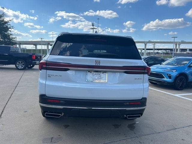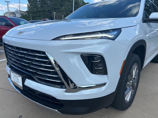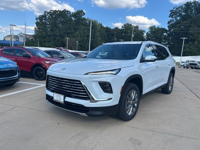 This 2026 Buick Enclave comes equipped with the following features Front Mounting License Plate Bracket Package, Power Package (110-Volt Power Outlet, 2nd Row 1-Touch Flat Folding Seat, 3rd Row 60/40 Power Split-Folding Bench, Head-Up Display, Heated Wiper Park, Inside Rearview Auto-Dimming Rear Camera Mirror, Memory Settings, and Universal Home Remote), Preferred Equipment Group 1SD, FWD, 12 Speakers, 3rd row seats: split-bench, 4-Wheel Disc Brakes, ABS brakes, Air Conditioning, Alloy wheels, AM/FM radio: SiriusXM with 360L, Apple CarPlay/Android Auto, Auto High-beam Headlights, Auto-dimming door mirrors, Auto-dimming Rear-View mirror, Automatic temperature control, Bose Premium 12-Speaker Audio System, Brake assist, Bumpers: body-color, Compass, Delay-off headlights, Driver 4-Way Power Lumbar Seat Adjuster, Driver 8-Way Power Seat Adjuster, Driver door bin, Driver vanity mirror, Dual front impact airbags, Dual front side impact airbags, Electronic Stability Control, Emergency communication system: OnStar and Buick connected services capable, Four wheel independent suspension, Front anti-roll bar, Front Bucket Seats, Front Center Armrest, Front dual zone A/C, Front Passenger 4-Way Power Lumbar Seat Adjuster, Front Passenger 6-Way Power Seat Adjuster, Front reading lights, Fully automatic headlights, Heated door mirrors, Heated Driver & Front Passenger Seats, Heated front seats, Heated steering wheel, Illuminated entry, Leather steering wheel, Leatherette Seat Trim, Low tire pressure warning, Navigation System, Occupant sensing airbag, Outside temperature display, Overhead airbag, Overhead console, Panic alarm, Passenger door bin, Passenger vanity mirror, Power door mirrors, Power driver seat, Power Liftgate, Power Panoramic Sunroof w/Sunshade, Power passenger seat, Power steering, Power windows, Premium audio system: Buick Infotainment System, Radio data system, Radio: Infotainment Center, Rear air conditioning, Rear anti-roll bar, Rear reading lights, Rear side impact airbag, Rear window defroster, Rear window wiper, Remote keyless entry, Security system, SiriusXM w/360L Trial Subscription, Speed control, Speed-sensing steering, Spoiler, Steering wheel mounted audio controls, Tachometer, Telescoping steering wheel, Tilt steering wheel, Traction control, Trip computer, Turn signal indicator mirrors, Variably intermittent wipers, Voltmeter, Wheels: 20 Alloy w/Medium Android Finish, Wireless Apple CarPlay, and Wireless Google Android Auto. FWD. 2026 Buick Enclave White Preferred FWD 8-Speed Automatic 2.5L DOHC