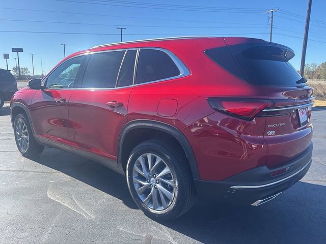 This 2026 Buick Enclave comes equipped with the following features Preferred Equipment Group 1SD, FWD, 12 Speakers, 3rd row seats: split-bench, 4-Wheel Disc Brakes, ABS brakes, Air Conditioning, Alloy wheels, AM/FM radio: SiriusXM with 360L, Apple CarPlay/Android Auto, Auto High-beam Headlights, Auto-dimming door mirrors, Auto-dimming Rear-View mirror, Automatic temperature control, Bose Premium 12-Speaker Audio System with Subwoofer, Brake assist, Bumpers: body-color, Compass, Delay-off headlights, Driver 4-Way Power Lumbar Seat Adjuster, Driver 8-Way Power Seat Adjuster, Driver door bin, Driver vanity mirror, Dual front impact airbags, Dual front side impact airbags, Electronic Stability Control, Emergency communication system: OnStar and Buick connected services capable, Four wheel independent suspension, Front anti-roll bar, Front Bucket Seats, Front Center Armrest, Front dual zone A/C, Front Passenger 4-Way Power Lumbar Seat Adjuster, Front Passenger 6-Way Power Seat Adjuster, Front reading lights, Fully automatic headlights, Heated door mirrors, Heated Driver and Front Passenger Seats, Heated front seats, Heated steering wheel, Illuminated entry, Leather steering wheel, Leatherette Seat Trim, Low tire pressure warning, Navigation System, Occupant sensing airbag, Outside temperature display, Overhead airbag, Overhead console, Panic alarm, Passenger door bin, Passenger vanity mirror, Power door mirrors, Power driver seat, Power Liftgate, Power passenger seat, Power steering, Power windows, Premium audio system: Buick Infotainment System, Radio data system, Radio: Infotainment Center, Rear air conditioning, Rear anti-roll bar, Rear reading lights, Rear side impact airbag, Rear window defroster, Rear window wiper, Remote keyless entry, Security system, SiriusXM with 360L Trial Subscription, Speed control, Speed-sensing steering, Spoiler, Steering wheel mounted audio controls, Tachometer, Telescoping steering wheel, Tilt steering wheel, Traction control, Trip computer, Turn signal indicator mirrors, Variably intermittent wipers, Voltmeter, Wheels: 20 Alloy with Medium Android Finish, Wireless Apple CarPlay, and Wireless Google Android Auto. FWD. 2026 Buick Enclave Cherry Red Preferred FWD 8-Speed Automatic 2.5L DOHC
