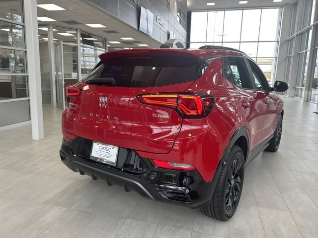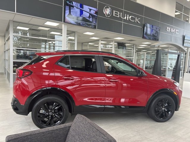 This 2026 Buick Encore GX comes equipped with the following features Black Roof Package (Black Exterior Mirror Caps, Black Roof Panel, and Black Roof Rails), Preferred Equipment Group 1SD, 4-Way Manual Passenger Seat Adjuster, 4-Wheel Disc Brakes, 5.45 Final Drive Axle Ratio, 6 Speakers, 6-Way Manual Driver Seat Adjuster, ABS brakes, Air Conditioning, Alloy wheels, AM/FM radio: SiriusXM, Auto High-beam Headlights, Automatic temperature control, Brake assist, Bumpers: body-color, Compass, Delay-off headlights, Driver door bin, Driver vanity mirror, Dual front impact airbags, Dual front side impact airbags, Electronic Stability Control, Emergency communication system: OnStar and Buick connected services capable, Enhanced Performance 6-Speaker System, Front anti-roll bar, Front Bucket Seats, Front Center Armrest, Front License Plate Bracket, Front reading lights, Front wheel independent suspension, Fully automatic headlights, Heated door mirrors, Illuminated entry, Knee airbag, Leatherette Seat Trim, Low tire pressure warning, Mechanical Jack with Tools, Occupant sensing airbag, Outside temperature display, Overhead airbag, Overhead console, Panic alarm, Passenger door bin, Passenger vanity mirror, Power door mirrors, Power steering, Power windows, Radio data system, Radio: AM/FM Audio System, Rear reading lights, Rear side impact airbag, Rear window defroster, Rear window wiper, Remote keyless entry, Ride and Handling Suspension, Security system, SiriusXM Trial Subscription, Speed control, Speed-sensing steering, Split folding rear seat, Spoiler, Sport steering wheel, Steering wheel mounted audio controls, Tachometer, Telescoping steering wheel, Tilt steering wheel, Traction control, Trip computer, Variably intermittent wipers, Wheels: 18 Gloss Black Aluminum, and Wireless Apple CarPlay/Wireless Android Auto. 2026 Buick Encore GX Brilliant Red Sport Touring FWD CVT ECOTEC 1.3L Turbo