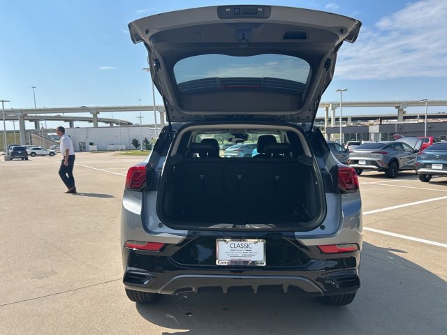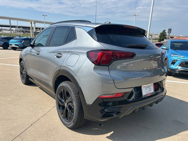 This 2026 Buick Encore GX comes equipped with the following features Black Roof Package (Black Exterior Mirror Caps, Black Roof Panel, and Black Roof Rails), Comfort Package (2-Way Power Driver Lumbar Control, 8-Way Power Driver Seat Adjuster, Flat-Folding Front Passenger Seatback, Heated Driver & Front Passenger Seats, Heated Steering Wheel, and Rear Center Armrest), Preferred Equipment Group 1SD, 4-Way Manual Passenger Seat Adjuster, 4-Wheel Disc Brakes, 5.45 Final Drive Axle Ratio, 6 Speakers, 6-Way Manual Driver Seat Adjuster, ABS brakes, Air Conditioning, Alloy wheels, AM/FM radio: SiriusXM, Auto High-beam Headlights, Automatic temperature control, Brake assist, Bumpers: body-color, Compass, Delay-off headlights, Driver door bin, Driver vanity mirror, Dual front impact airbags, Dual front side impact airbags, Electronic Stability Control, Emergency communication system: OnStar and Buick connected services capable, Enhanced Performance 6-Speaker System, Front anti-roll bar, Front Bucket Seats, Front Center Armrest, Front License Plate Bracket, Front reading lights, Front wheel independent suspension, Fully automatic headlights, Heated door mirrors, Illuminated entry, Knee airbag, Leatherette Seat Trim, Low tire pressure warning, Mechanical Jack w/Tools, Occupant sensing airbag, Outside temperature display, Overhead airbag, Overhead console, Panic alarm, Passenger door bin, Passenger vanity mirror, Power door mirrors, Power steering, Power windows, Radio data system, Radio: AM/FM Audio System, Rear reading lights, Rear side impact airbag, Rear window defroster, Rear window wiper, Remote keyless entry, Ride & Handling Suspension, Security system, SiriusXM Trial Subscription, Speed control, Speed-sensing steering, Split folding rear seat, Spoiler, Sport steering wheel, Steering wheel mounted audio controls, Tachometer, Telescoping steering wheel, Tilt steering wheel, Traction control, Trip computer, Variably intermittent wipers, Wheels: 18 Gloss Black Aluminum, and Wireless Apple CarPlay/Wireless Android Auto. 2026 Buick Encore GX Gray Metallic Sport Touring FWD CVT ECOTEC 1.3L Turbo