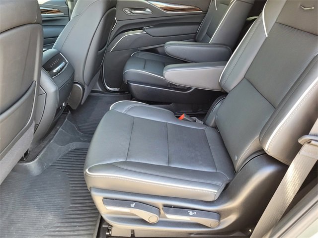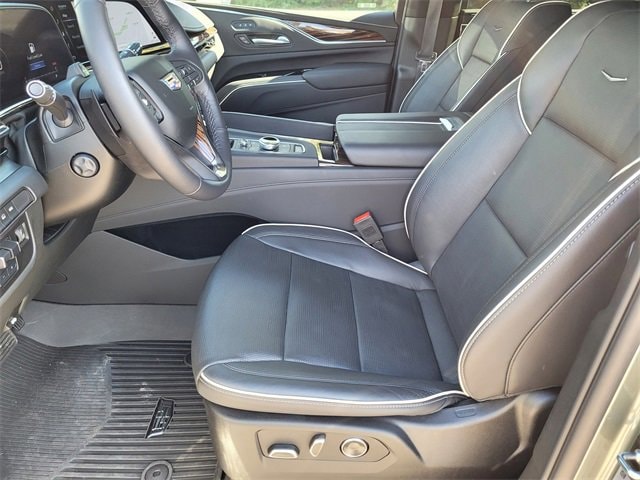 This 2024 Cadillac Escalade comes equipped with Performance Package (Electronic Limited-Slip Differential, Hitch Guidance w/Hitch View, Integrated Trailer Brake Controller, Magnetic Ride Control Suspension, Smart Trailer Integration Indicator, and Trailer Side Blind Zone Alert), Preferred Equipment Group 1SB (Adaptive Cruise Control, AKG Studio 19-Speaker Audio System, Automatic Seat Belt Tightening, Door Lock & Latch Shields, Enhanced Automatic Emergency Braking, Enhanced Automatic Parking Assist, Glass Breakage Sensor, Heated & Ventilated Driver & Front Passenger Seats, Lane Change Alert w/Side Blind Zone Alert, Mechanical Limited-Slip Differential, Power Panoramic Tilt-Sliding Sunroof, Rear Camera Mirror, Rear Camera Mirror Washer, Rear Cross Traffic Alert, Reconfigurable Full-Color Head-Up Display, Reverse Automatic Braking, Running Board Assist Steps, Theft-Deterrent Alarm System, Vehicle Inclination Sensor, and Vehicle Interior Movement Sensor), AWD, Black Leather, 16.9 Diagonal OLED Infotainment Screen, 19 Speakers, 2-Presets Memory For Driver Seat Adjuster, 3.23 Axle Ratio, 3rd row seats: split-bench, 4-Way Power Driver Lumbar Seat Adjuster, 4-Way Power Front Passenger Lumbar Seat Adjuster, 4-Wheel Disc Brakes, 8-Way Power Driver Seat Adjuster, 8-Way Power Front Passenger Seat Adjuster, ABS brakes, Air Conditioning, Alloy wheels, AM/FM radio: SiriusXM with 360L, Apple CarPlay/Android Auto, Audio memory, Auto High-beam Headlights, Auto tilt-away steering wheel, Auto-dimming door mirrors, Auto-dimming Rear-View mirror, Automatic temperature control, Brake assist, Bumpers: body-color, Compass, Delay-off headlights, Driver door bin, Driver vanity mirror, Dual front impact airbags, Dual front side impact airbags, Electronic Stability Control, Emergency communication system: OnStar and Cadillac connected services capable, Exterior Parking Camera Rear, Four wheel independent suspension, Front anti-roll bar, Front Bucket Seats, Front Center Armrest w/Storage, Front dual zone A/C, Front License Plate Bracket, Front reading lights, Fully automatic headlights, Garage door transmitter, HD Radio, Heads-Up Display, Heated door mirrors, Heated Driver & Front Passenger Seats, Heated front seats, Heated rear seats, Heated steering wheel, Illuminated entry, Leather Seating Surfaces w/Mini-Chevron Perf Inserts, Low tire pressure warning, Memory seat, Navigation System, Occupant sensing airbag, Outside temperature display, Overhead airbag, Overhead console, Panic alarm, Passenger door bin, Passenger vanity mirror, Power door mirrors, Power driver seat, Power Liftgate, Power moonroof, Power passenger seat, Power steering, Power windows, Premium Smooth Ride Suspension, Radio data system, Radio: AM/FM w/Navigation, Rain sensing wipers, Rear air conditioning, Rear anti-roll bar, Rear reading lights, Rear window defroster, Rear window wiper, Remote keyless entry, Security system, SiriusXM w/360L, Speed control, Split folding rear seat, Spoiler, Steering wheel memory, Steering wheel mounted audio controls, Tachometer, Teen Driver, Telescoping steering wheel, Tilt steering wheel, Traction control, Trip computer, Turn signal indicator mirrors, Variably intermittent wipers, Ventilated front seats, Voltmeter, Wheel Locks, Wheels: 22 14-Spoke Alloy w/Polished Finish, and Wireless Apple CarPlay/Wireless Android Auto. Clean CARFAX. AWD, Black Leather.
