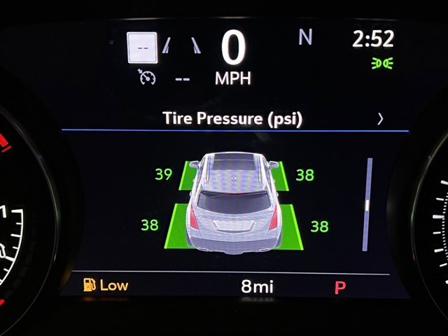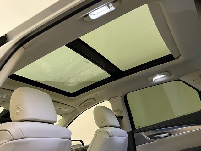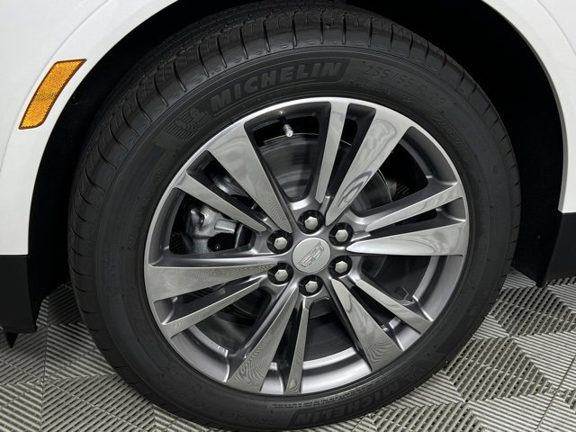 - Opens or closes when the system senses the key fob and the driver extends their foot under the left-hand side of the rear bumper over an image of the Cadillac Crest projected under the vehicle