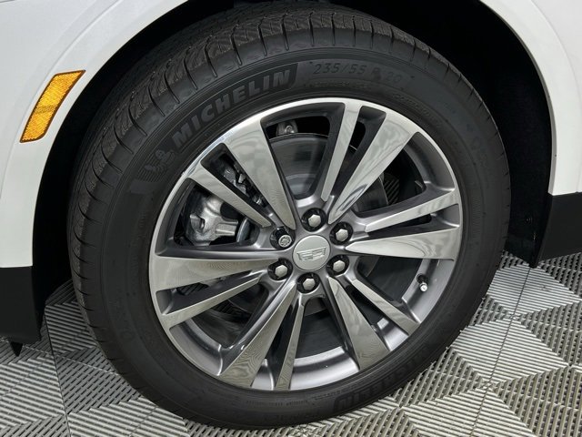 - Opens or closes when the system senses the key fob and the driver extends their foot under the left-hand side of the rear bumper over an image of the Cadillac Crest projected under the vehicle