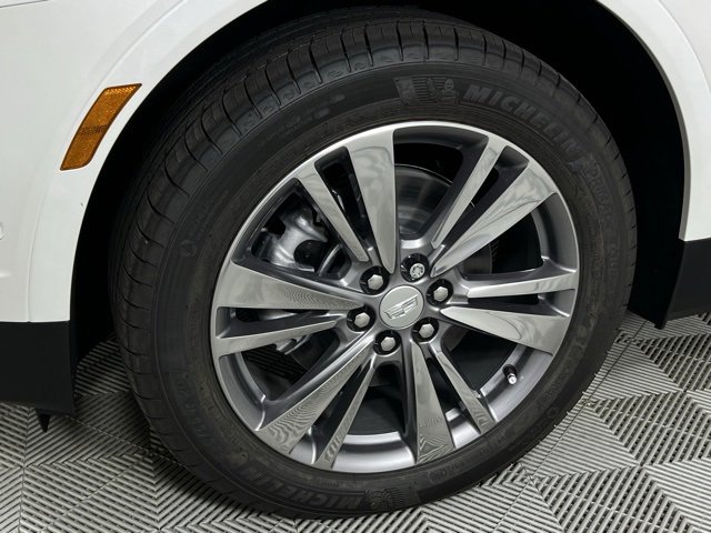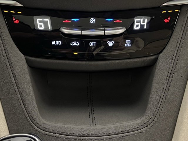 - Opens or closes when the system senses the key fob and the driver extends their foot under the left-hand side of the rear bumper over an image of the Cadillac Crest projected under the vehicle