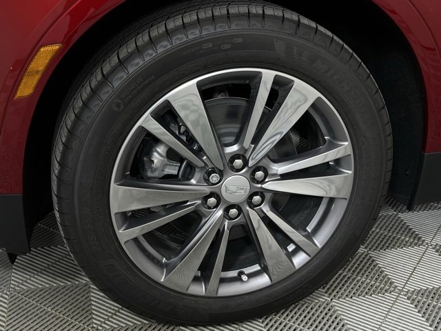 - Opens or closes when the system senses the key fob and the driver extends their foot under the left-hand side of the rear bumper over an image of the Cadillac Crest projected under the vehicle