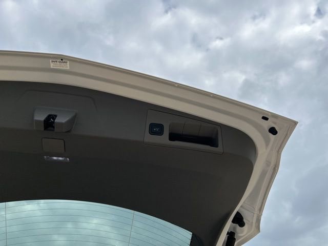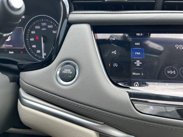 - Opens or closes when the system senses the key fob and the driver extends their foot under the left-hand side of the rear bumper over an image of the Cadillac Crest projected under the vehicle