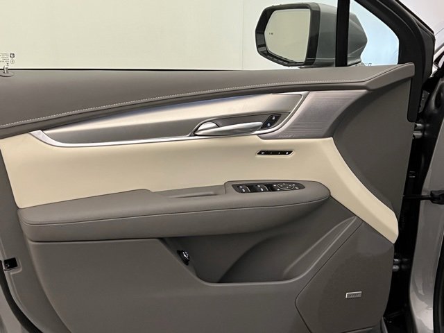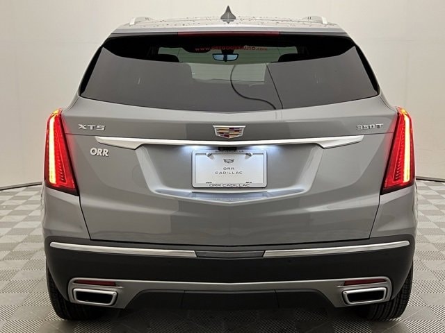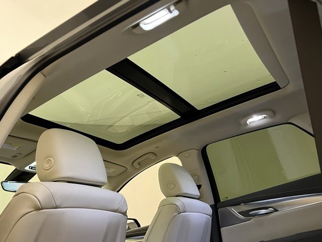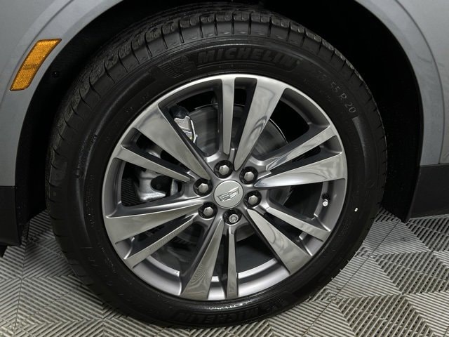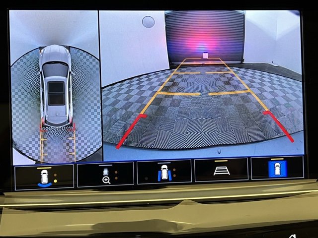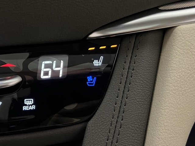 - Opens or closes when the system senses the key fob and the driver extends their foot under the left-hand side of the rear bumper over an image of the Cadillac Crest projected under the vehicle