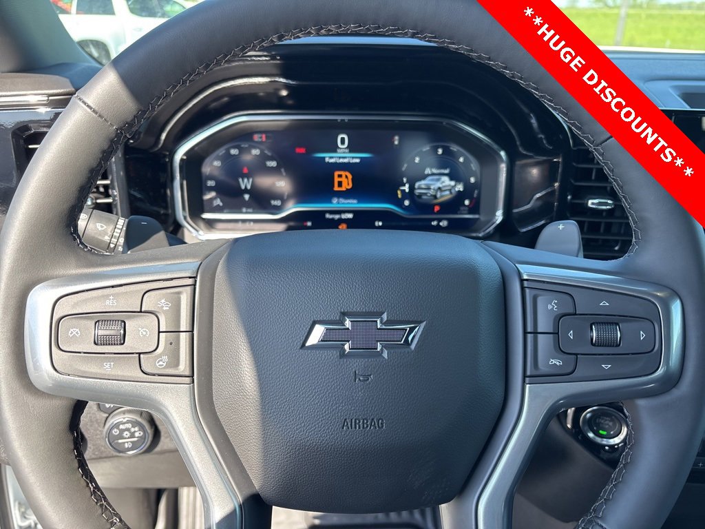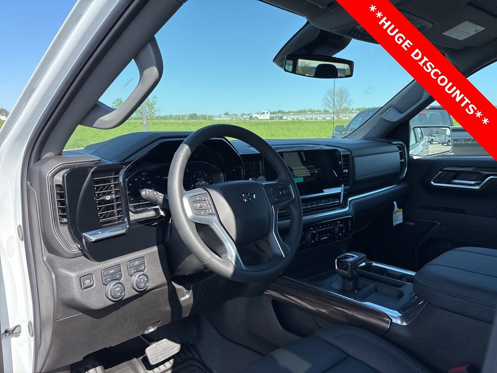 Pricing excludes tax, tag, license fees, dealers $129 doc fee, $1,995 in dealer addendum. See dealer for exact pricing. Some discounts require dealership to arrange financing, price not available with 0% or incentivized rates. See dealer for details. This 2025 Chevrolet Silverado 1500 comes equipped with these features Convenience Package (10-Way Power Driver Seat w/Lumbar, 120-Volt Bed Mounted Power Outlet, 120-Volt Interior Power Outlet, Dual Rear USB Ports (Charge Only), Dual-Zone Automatic Climate Control, Electric Rear-Window Defogger, Heated Driver & Front Outboard Passenger Seats, Heated Steering Wheel, Keyless Open & Start, LED Cargo Area Lighting, Manual Tilt/Telescoping Steering Column, Remote Vehicle Starter System, Theft Deterrent System (Unauthorized Entry), and Wrapped Steering Wheel), Convenience Package II (Hitch Guidance w/Hitch View, In-Vehicle Trailering System App, Power Sliding Rear Window w/Rear Defogger, Premium Bose 7-Speaker Sound System, and Universal Home Remote), High Capacity Suspension Package, Leather Package (Leather-Appointed Front Seat Trim), Preferred Equipment Group 1SP (12.3 Multicolor Reconfigurable Digital Display, 6-Speaker Audio System, All-Star Edition, Auto-Locking Rear Differential, Bluetooth® For Phone, Color-Keyed Carpeting Floor Covering, Deep-Tinted Glass, Electronic Cruise Control, EZ Lift Power Lock & Release Tailgate, Front Frame-Mounted Black Recovery Hooks, Front LED Fog Lamps, Front Rubberized Vinyl Floor Mats, HD Rear Vision Camera, Heated Power-Adjustable Outside Mirrors, High Gloss Black Mirror Caps, Inside Rear-View Mirror w/Tilt, Integrated Trailer Brake Controller, OnStar Services Capable, Power Front Windows w/Driver Express Up/Down, Power Front Windows w/Passenger Express Down, Power Rear Windows w/Express Down, Rear 60/40 Folding Bench Seat (Folds Up), Rear Rubberized-Vinyl Floor Mats, SiriusXM w/360L Trial Subscription, Standard Tailgate, Steering Wheel Audio Controls, Teen Driver, Tire Pressure Monitoring System, and Wi-Fi Hot Spot Capable), Protection Package (Chevytec Spray-On Black Bedliner and Rear Wheelhouse Liners), Standard Suspension Package, Trailering Package (Hitch Guidance), Up-Level Rear Seat w/Storage Package, 10-Speed Automatic, 4WD, Black Leather, 170 Amp Alternator, 2 USB Data Ports, 220 Amp Alternator, 3.23 Rear Axle Ratio, 4-Wheel Disc Brakes, 40/20/40 Front Split-Bench Seat, 6 Speakers, ABS brakes, Air Conditioning, Alloy wheels, AM/FM radio: SiriusXM with 360L, Apple CarPlay/Android Auto, Auto High-beam Headlights, Automatic Emergency Braking, Automatic temperature control, Auxiliary External Transmission Oil Cooler, Brake assist, Bumpers: body-color, Cloth Seat Trim, Compass, Delay-off headlights, Driver door bin, Driver vanity mirror, Dual front impact airbags, Dual front side impact airbags, Electronic Stability Control, Electronic Transmission Range Selector Shifter, Emergency communication system: OnStar, External Engine Oil Cooler, Floor Liners w/Front Removable Carpet Inserts, Floor Liners w/Rear Removable Carpet Inserts, Floor Mounted Center Console, Following Distance Indicator, Forward Collision Alert, Front anti-roll bar, Front Bucket Seats, Front Center Armrest w/Storage, Front dual zone A/C, Front fog lights, Front Pedestrian Braking, Front reading lights, Front wheel independent suspension, Fully automatic headlights, Heated door mirrors, Heated front seats, Heated steering wheel, Illuminated entry, IntelliBeam Automatic High Beam On/Off, Lane Keep Assist w/Lane Departure Warning, Low tire pressure warning, Occupant sensing airbag, Outside temperature display, Overhead airbag, Overhead console, Panic alarm, Passenger door bin, Passenger vanity mirror, Power door mirrors, Power driver seat, Power steering, Power windows, Premium audio system: Chevrolet Infotainment 3 Premium, Radio data system, Radio: Chevrolet Infotainment 3 Premium System, Rear reading lights, Rear step bumper,