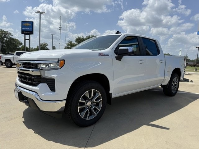 Summit White 2025 Chevrolet Silverado 1500 LT 4WD 10-Speed Automatic EcoTec3 5.3L V8 The 2025 Chevrolet Silverado 1500 comes with the following features; Convenience Package (10-Way Power Driver Seat w/Lumbar, 120-Volt Bed Mounted Power Outlet, 120-Volt Interior Power Outlet, Dual Rear USB Ports (Charge Only), Dual-Zone Automatic Climate Control, Heated Driver & Front Outboard Passenger Seats, Heated Steering Wheel, Keyless Open & Start, LED Cargo Area Lighting, Manual Tilt/Telescoping Steering Column, and Wrapped Steering Wheel), Preferred Equipment Group 1LT (12.3 Multicolor Reconfigurable Digital Display, All-Star Edition, Auto-Locking Rear Differential, Bluetooth® For Phone, Chrome Mirror Caps, Color-Keyed Carpeting Floor Covering, Deep-Tinted Glass, Electronic Cruise Control, EZ Lift Power Lock & Release Tailgate, Front Frame-Mounted Black Recovery Hooks, Front Rubberized Vinyl Floor Mats, HD Rear Vision Camera, Heated Power-Adjustable Outside Mirrors, Inside Rear-View Mirror w/Tilt, Integrated Trailer Brake Controller, OnStar Services Capable, Power Front Windows w/Driver Express Up/Down, Power Front Windows w/Passenger Express Down, Power Rear Windows w/Express Down, Rear 60/40 Folding Bench Seat (Folds Up), Rear Rubberized-Vinyl Floor Mats, SiriusXM w/360L Trial Subscription, Standard Tailgate, Steering Wheel Audio Controls, Teen Driver, Tire Pressure Monitoring System, and Wi-Fi Hot Spot Capable), Protection Package (Chevytec Spray-On Black Bedliner and Rear Wheelhouse Liners), Remote Start Package (Electric Rear-Window Defogger, Remote Vehicle Starter System, and Theft Deterrent System (Unauthorized Entry)), Standard Suspension Package, Trailering Package (Hitch Guidance), Z71 Off-Road & Protection Package (All-Weather Floor Liner (LPO) (AAK)), Z71 Off-Road Package (Dual Exhaust w/Polished Outlets, Heavy-Duty Air Filter, Hill Descent Control, Off-Road Suspension, and Wheels: 18 x 8.5 Bright Silver Painted Aluminum), 10-Speed Automatic, 4WD, Black Cloth, 170 Amp Alternator, 2 USB Data Ports, 220 Amp Alternator, 3.23 Rear Axle Ratio, 4-Wheel Disc Brakes, 40/20/40 Front Split-Bench Seat, 6 Speakers, 6-Speaker Audio System, ABS brakes, Air Conditioning, Alloy wheels, AM/FM radio: SiriusXM with 360L, Apple CarPlay/Android Auto, Auto High-beam Headlights, Automatic Emergency Braking, Automatic temperature control, Auxiliary External Transmission Oil Cooler, Brake assist, Bumpers: chrome, Cloth Seat Trim, Compass, Delay-off headlights, Driver door bin, Driver vanity mirror, Dual front impact airbags, Dual front side impact airbags, Electronic Stability Control, Electronic Transmission Range Selector Shifter, Emergency communication system: OnStar, External Engine Oil Cooler, Floor Mounted Center Console, Following Distance Indicator, Forward Collision Alert, Front anti-roll bar, Front Bucket Seats, Front Center Armrest w/Storage, Front dual zone A/C, Front License Plate Kit, Front Pedestrian Braking, Front reading lights, Front wheel independent suspension, Fully automatic headlights, Heated door mirrors, Heated front seats, Heated steering wheel, Illuminated entry, IntelliBeam Automatic High Beam On/Off, Lane Keep Assist w/Lane Departure Warning, Low tire pressure warning, Occupant sensing airbag, Outside temperature display, Overhead airbag, Overhead console, Panic alarm, Passenger door bin, Passenger vanity mirror, Power door mirrors, Power driver seat, Power steering, Power windows, Premium audio system: Chevrolet Infotainment 3 Premium, Radio data system, Radio: Chevrolet Infotainment 3 Premium System, Rear reading lights, Rear step bumper, Rear window defroster, Remote keyless entry, Security system, Speed control, Speed-sensing steering, Split folding rear seat, Steering wheel mounted audio controls, Tachometer, Telescoping steering wheel, Tilt steering wheel, Traction control, Trip computer, Variabl Price includes: $1000 - GM Bonus Cash. Exp. 11/03/2025 $3250 - Chevr