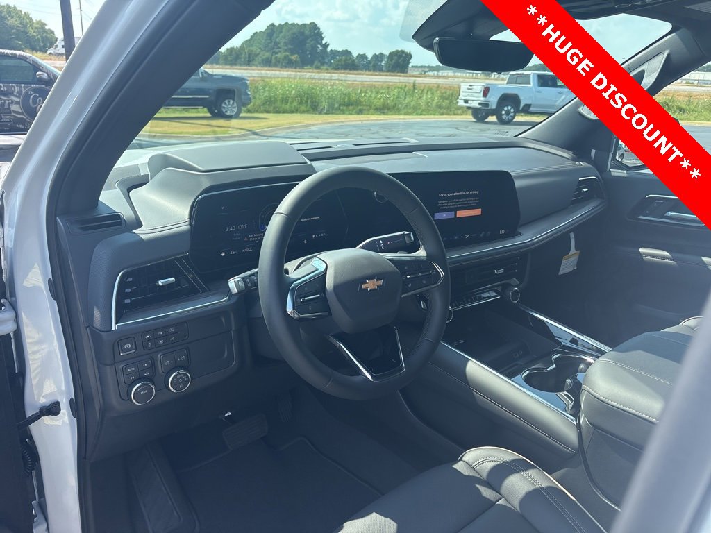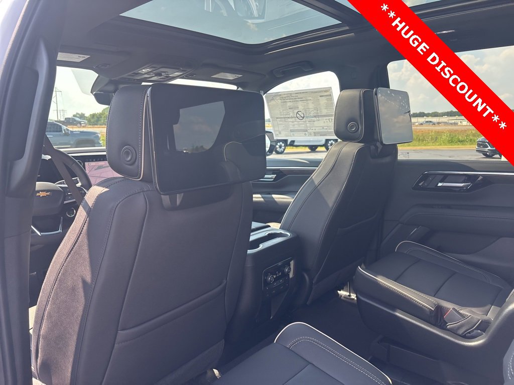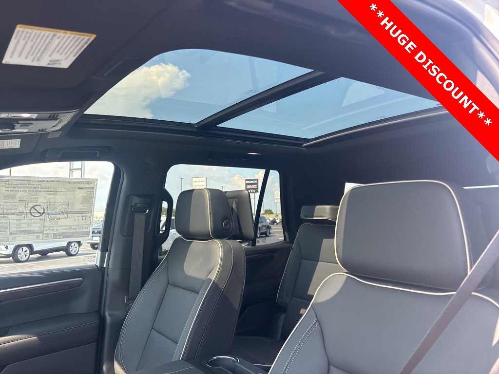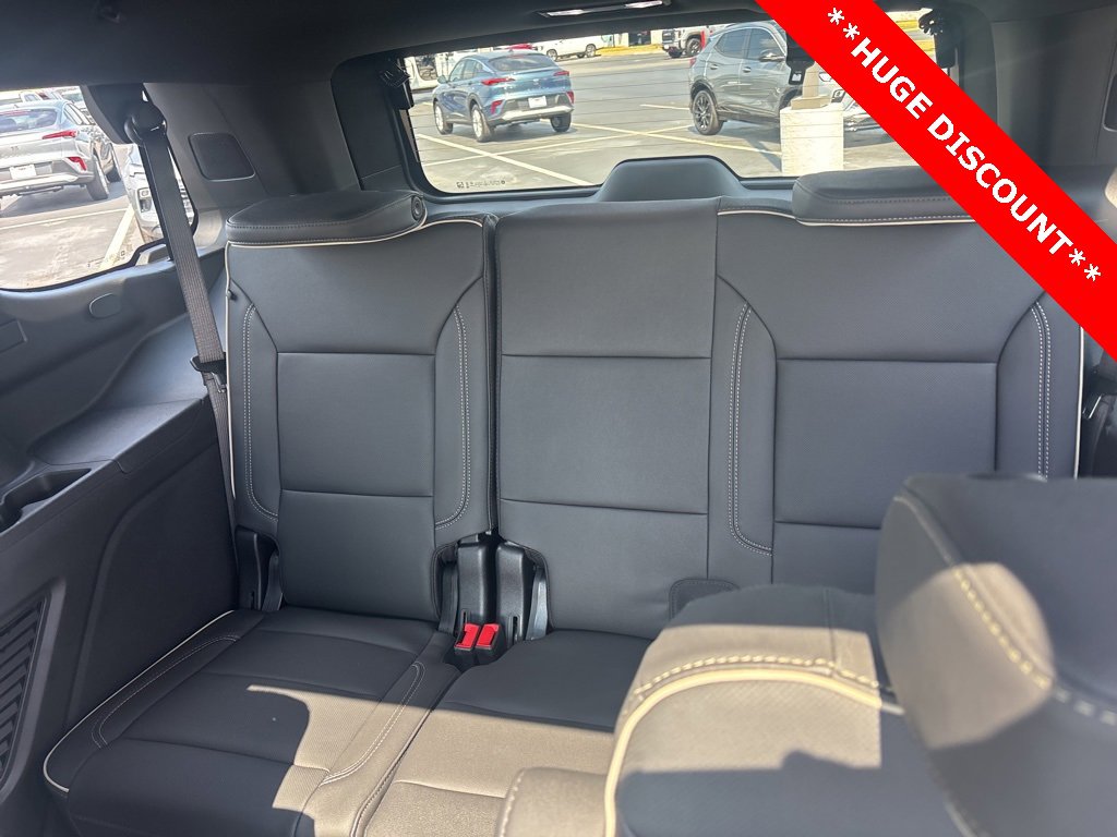 Pricing excludes tax, tag, license fees, dealers $129 doc fee, $1,995 in dealer addendum. See dealer for exact pricing. Some discounts require dealership to arrange financing, price not available with 0% or incentivized rates. See dealer for details. This 2025 Chevrolet Tahoe comes equipped with these features Advanced Security Package (Glass Breakage Sensor, Theft-Deterrent Alarm System, Vehicle Inclination Sensor, and Vehicle Interior Movement Sensor), Preferred Equipment Group 1LZ (1st & 2nd Row Color-Keyed Carpeted Floor Mats, 3-Spoke Wrapped Steering Wheel, 3rd Row 60/40 Power-Folding Split-Bench Seat, Auto-Dimming Inside Rear-View Mirror, Bose 10-Speaker Centerpoint Surround Audio Sys Ft, Bright Front & Rear Door Sill Plates, Chrome Door Handles w/Body-Color Strip, Color-Keyed Carpeting Floor Covering, Dual Exhaust System, Floor Console, Front LED Fog Lamps, Front Pedestrian & Bicyclist Braking, Frontal Driver & Outboard Passenger Airbags, Heated 2nd Row Outboard Seats, Heated Steering Wheel, LED Headlamps w/LED Daytime Running Lamps, LED Tail Lamps, Memory Settings, Outside Heated Power-Adjustable Mirrors, Power Release 2nd Row Bucket Seats, Power Tilt & Telescopic Steering Column, Rear Power Liftgate, Remote Start, SiriusXM w/360L Trial Subscription, Universal Home Remote, and Wireless Phone Charging), Technology & Entertainment Package (Dual-Pane Power Panoramic Sunroof and Rear Seat Media System), Technology Package (15 Diagonal Multi-Color Head-Up Display, AutoSense Hands-Free Power Liftgate, and Inside Rearview Auto-Dimming Rear Camera Mirror), 4WD, Black Leather, 10 Speakers, 20 x 9 Polished Aluminum Wheels, 3.23 Rear Axle Ratio, 3rd row seats: split-bench, 4-Way Power Driver Lumbar Seat Adjuster, 4-Way Power Front Passenger Lumbar Seat Adjuster, 4-Wheel Disc Brakes, 8-Way Power Driver Seat Adjuster, 8-Way Power Front Passenger Seat Adjuster, ABS brakes, Adaptive suspension, Air Conditioning, Alloy wheels, AM/FM radio: SiriusXM with 360L, Apple CarPlay/Android Auto, Auto High-beam Headlights, Auto-dimming door mirrors, Auto-dimming Rear-View mirror, Auto-leveling suspension, Automatic temperature control, Brake assist, Bumpers: body-color, Compass, Delay-off headlights, Driver & Front Passenger Heated & Ventilated Seats, Driver door bin, Driver vanity mirror, Dual front impact airbags, Dual front side impact airbags, Electronic Stability Control, Emergency communication system: OnStar and Chevrolet connected services capable, Exterior Parking Camera Rear, Four wheel independent suspension, Front anti-roll bar, Front Bucket Seats, Front Center Armrest, Front dual zone A/C, Front fog lights, Front reading lights, Fully automatic headlights, Garage door transmitter, Heated door mirrors, Heated Driver & Front Passenger Seats, Heated front seats, Heated rear seats, Heated steering wheel, Illuminated entry, Low tire pressure warning, Magnetic Ride Control Suspension, Memory seat, Navigation system: Google built-in compatibility (select service plan required, terms and limitations apply), Occupant sensing airbag, Outside temperature display, Overhead airbag, Overhead console, Panic alarm, Passenger door bin, Passenger vanity mirror, Perforated Leather Seat Trim, Power door mirrors, Power driver seat, Power Liftgate, Power passenger seat, Power steering, Power windows, Premium audio system: Chevrolet Infotainment 3 Premium, Radio data system, Radio: 17.7 Diagonal Advanced Color LCD Display, Rain sensing wipers, Rear air conditioning, Rear anti-roll bar, Rear reading lights, Rear window defroster, Rear window wiper, Remote keyless entry, Security system, Set of 4 Wheel Locks (LPO), Speed control, Speed-sensing steering, Split folding rear seat, Spoiler, Steering wheel memory, Steering wheel mounted audio controls, Tachometer, Telescoping steering wheel, Tilt steering wheel, Traction control, Trip computer, Turn signal indicator mirrors, Variably intermittent wipers, Ventila