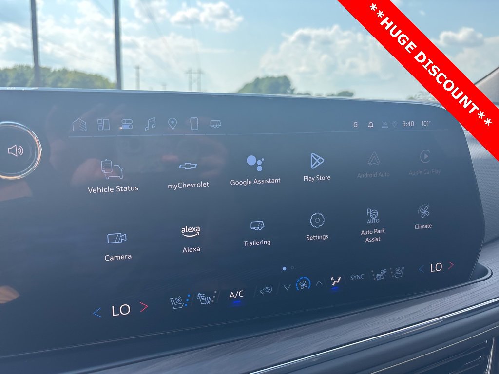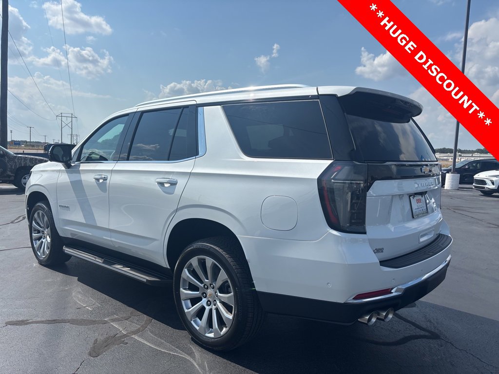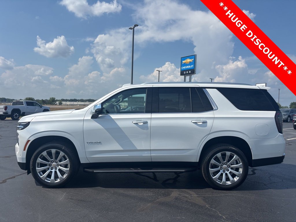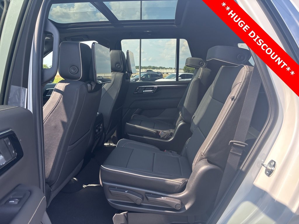 Pricing excludes tax, tag, license fees, dealers $129 doc fee, $1,995 in dealer addendum. See dealer for exact pricing. Some discounts require dealership to arrange financing, price not available with 0% or incentivized rates. See dealer for details. This 2025 Chevrolet Tahoe comes equipped with these features Advanced Security Package (Glass Breakage Sensor, Theft-Deterrent Alarm System, Vehicle Inclination Sensor, and Vehicle Interior Movement Sensor), Preferred Equipment Group 1LZ (1st & 2nd Row Color-Keyed Carpeted Floor Mats, 3-Spoke Wrapped Steering Wheel, 3rd Row 60/40 Power-Folding Split-Bench Seat, Auto-Dimming Inside Rear-View Mirror, Bose 10-Speaker Centerpoint Surround Audio Sys Ft, Bright Front & Rear Door Sill Plates, Chrome Door Handles w/Body-Color Strip, Color-Keyed Carpeting Floor Covering, Dual Exhaust System, Floor Console, Front LED Fog Lamps, Front Pedestrian & Bicyclist Braking, Frontal Driver & Outboard Passenger Airbags, Heated 2nd Row Outboard Seats, Heated Steering Wheel, LED Headlamps w/LED Daytime Running Lamps, LED Tail Lamps, Memory Settings, Outside Heated Power-Adjustable Mirrors, Power Release 2nd Row Bucket Seats, Power Tilt & Telescopic Steering Column, Rear Power Liftgate, Remote Start, SiriusXM w/360L Trial Subscription, Universal Home Remote, and Wireless Phone Charging), Technology & Entertainment Package (Dual-Pane Power Panoramic Sunroof and Rear Seat Media System), Technology Package (15 Diagonal Multi-Color Head-Up Display, AutoSense Hands-Free Power Liftgate, and Inside Rearview Auto-Dimming Rear Camera Mirror), 4WD, Black Leather, 10 Speakers, 20 x 9 Polished Aluminum Wheels, 3.23 Rear Axle Ratio, 3rd row seats: split-bench, 4-Way Power Driver Lumbar Seat Adjuster, 4-Way Power Front Passenger Lumbar Seat Adjuster, 4-Wheel Disc Brakes, 8-Way Power Driver Seat Adjuster, 8-Way Power Front Passenger Seat Adjuster, ABS brakes, Adaptive suspension, Air Conditioning, Alloy wheels, AM/FM radio: SiriusXM with 360L, Apple CarPlay/Android Auto, Auto High-beam Headlights, Auto-dimming door mirrors, Auto-dimming Rear-View mirror, Auto-leveling suspension, Automatic temperature control, Brake assist, Bumpers: body-color, Compass, Delay-off headlights, Driver & Front Passenger Heated & Ventilated Seats, Driver door bin, Driver vanity mirror, Dual front impact airbags, Dual front side impact airbags, Electronic Stability Control, Emergency communication system: OnStar and Chevrolet connected services capable, Exterior Parking Camera Rear, Four wheel independent suspension, Front anti-roll bar, Front Bucket Seats, Front Center Armrest, Front dual zone A/C, Front fog lights, Front reading lights, Fully automatic headlights, Garage door transmitter, Heated door mirrors, Heated Driver & Front Passenger Seats, Heated front seats, Heated rear seats, Heated steering wheel, Illuminated entry, Low tire pressure warning, Magnetic Ride Control Suspension, Memory seat, Navigation system: Google built-in compatibility (select service plan required, terms and limitations apply), Occupant sensing airbag, Outside temperature display, Overhead airbag, Overhead console, Panic alarm, Passenger door bin, Passenger vanity mirror, Perforated Leather Seat Trim, Power door mirrors, Power driver seat, Power Liftgate, Power passenger seat, Power steering, Power windows, Premium audio system: Chevrolet Infotainment 3 Premium, Radio data system, Radio: 17.7 Diagonal Advanced Color LCD Display, Rain sensing wipers, Rear air conditioning, Rear anti-roll bar, Rear reading lights, Rear window defroster, Rear window wiper, Remote keyless entry, Security system, Set of 4 Wheel Locks (LPO), Speed control, Speed-sensing steering, Split folding rear seat, Spoiler, Steering wheel memory, Steering wheel mounted audio controls, Tachometer, Telescoping steering wheel, Tilt steering wheel, Traction control, Trip computer, Turn signal indicator mirrors, Variably intermittent wipers, Ventila