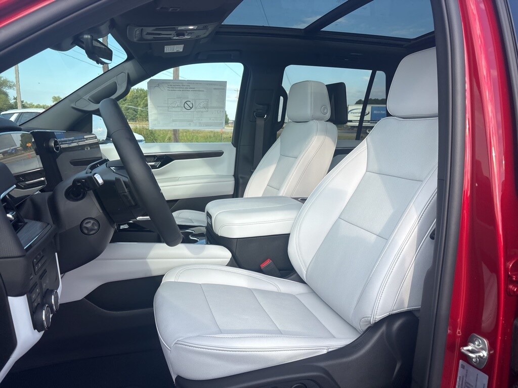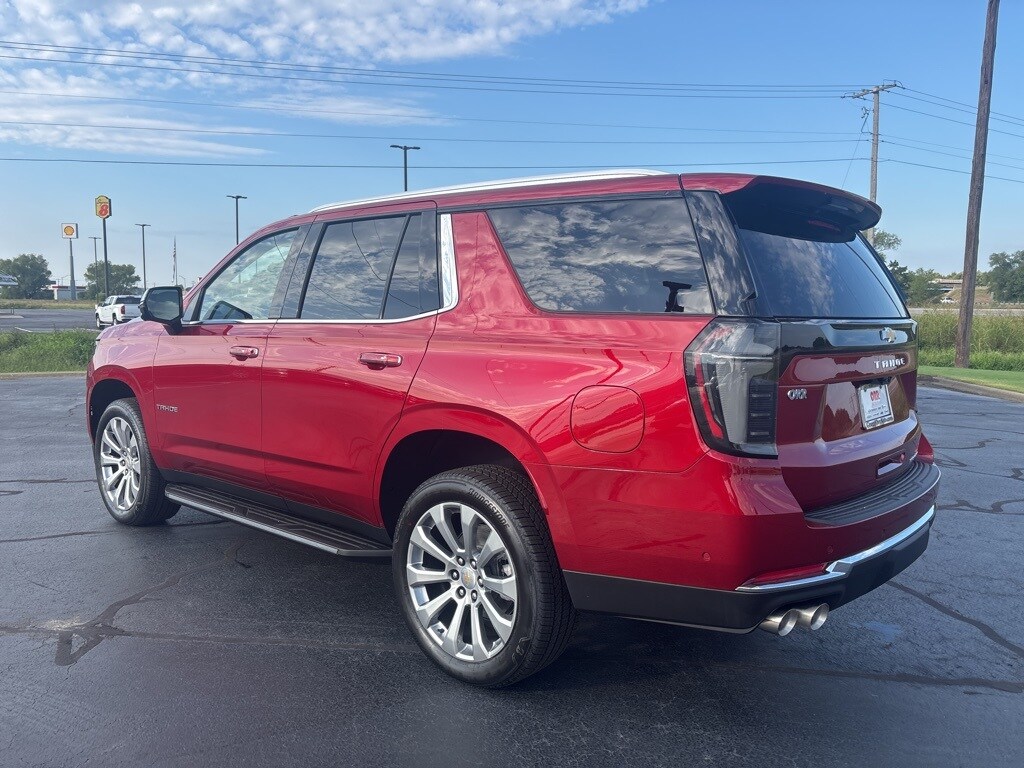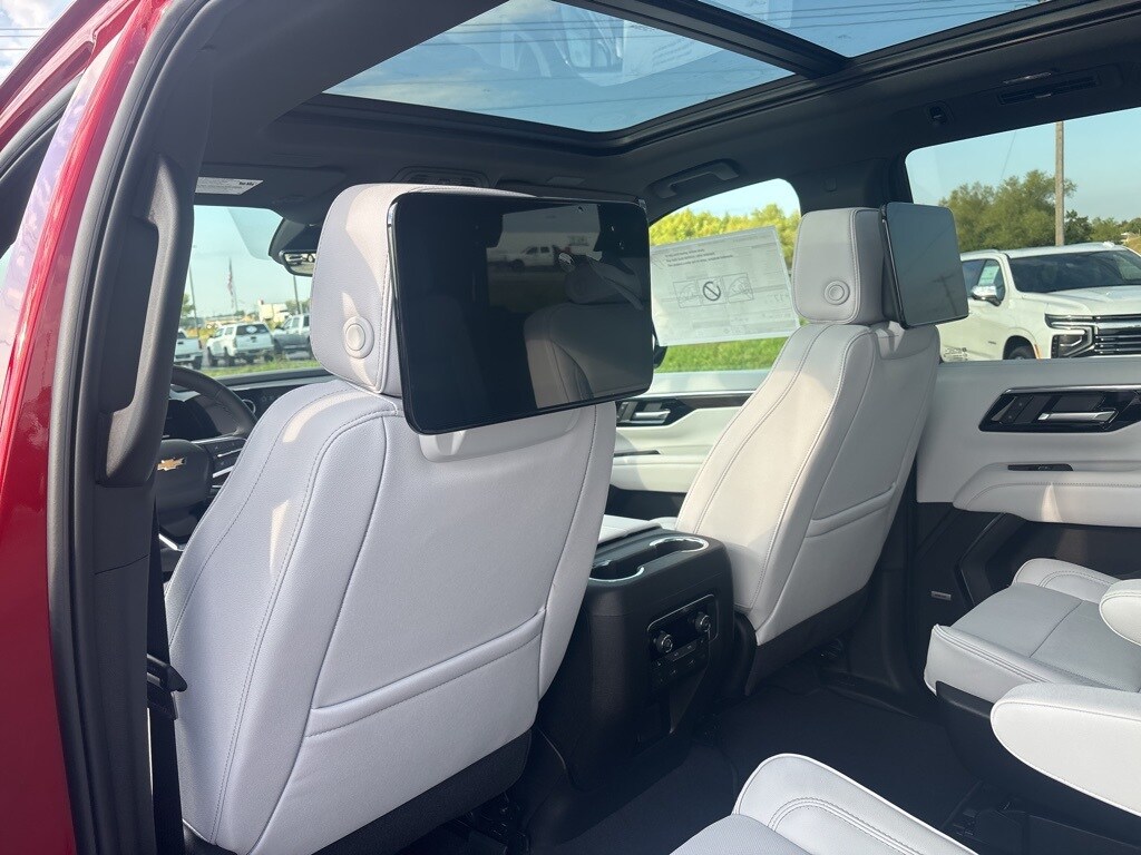 Pricing excludes tax, tag, license fees, dealers $129 doc fee, $1,995 in dealer addendum. See dealer for exact pricing. Some discounts require dealership to arrange financing, price not available with 0% or incentivized rates. See dealer for details. This 2025 Chevrolet Tahoe comes equipped with these features Advanced Security Package (Glass Breakage Sensor, Theft-Deterrent Alarm System, Vehicle Inclination Sensor, and Vehicle Interior Movement Sensor), Preferred Equipment Group 1LZ (1st & 2nd Row Color-Keyed Carpeted Floor Mats, 3-Spoke Wrapped Steering Wheel, 3rd Row 60/40 Power-Folding Split-Bench Seat, Auto-Dimming Inside Rear-View Mirror, Bose 10-Speaker Centerpoint Surround Audio Sys Ft, Bright Front & Rear Door Sill Plates, Chrome Door Handles w/Body-Color Strip, Color-Keyed Carpeting Floor Covering, Dual Exhaust System, Floor Console, Front LED Fog Lamps, Front Pedestrian & Bicyclist Braking, Frontal Driver & Outboard Passenger Airbags, Heated 2nd Row Outboard Seats, Heated Steering Wheel, LED Headlamps w/LED Daytime Running Lamps, LED Tail Lamps, Memory Settings, Outside Heated Power-Adjustable Mirrors, Power Release 2nd Row Bucket Seats, Power Tilt & Telescopic Steering Column, Rear Power Liftgate, Remote Start, SiriusXM w/360L Trial Subscription, Universal Home Remote, and Wireless Phone Charging), Technology & Entertainment Package (Dual-Pane Power Panoramic Sunroof and Rear Seat Media System), Technology Package (15" Diagonal Multi-Color Head-Up Display, AutoSense Hands-Free Power Liftgate, and Inside Rearview Auto-Dimming Rear Camera Mirror), 4WD, Gray Leather, 10 Speakers, 20" x 9" Polished Aluminum Wheels, 3.23 Rear Axle Ratio, 3rd row seats: split-bench, 4-Way Power Driver Lumbar Seat Adjuster, 4-Way Power Front Passenger Lumbar Seat Adjuster, 4-Wheel Disc Brakes, 8-Way Power Driver Seat Adjuster, 8-Way Power Front Passenger Seat Adjuster, ABS brakes, Adaptive suspension, Air Conditioning, Alloy wheels, AM/FM radio: SiriusXM with 360L, Apple CarPlay/Android Auto, Auto High-beam Headlights, Auto-dimming door mirrors, Auto-dimming Rear-View mirror, Auto-leveling suspension, Automatic temperature control, Brake assist, Bumpers: body-color, Compass, Delay-off headlights, Driver & Front Passenger Heated & Ventilated Seats, Driver door bin, Driver vanity mirror, Dual front impact airbags, Dual front side impact airbags, Electronic Stability Control, Emergency communication system: OnStar and Chevrolet connected services capable, Exterior Parking Camera Rear, Four wheel independent suspension, Front anti-roll bar, Front Bucket Seats, Front Center Armrest, Front dual zone A/C, Front fog lights, Front reading lights, Fully automatic headlights, Garage door transmitter, Heated door mirrors, Heated Driver & Front Passenger Seats, Heated front seats, Heated rear seats, Heated steering wheel, Illuminated entry, Low tire pressure warning, Magnetic Ride Control Suspension, Memory seat, Navigation system: Google built-in compatibility (select service plan required, terms and limitations apply), Occupant sensing airbag, Outside temperature display, Overhead airbag, Overhead console, Panic alarm, Passenger door bin, Passenger vanity mirror, Perforated Leather Seat Trim, Power door mirrors, Power driver seat, Power Liftgate, Power passenger seat, Power steering, Power windows, Premium audio system: Chevrolet Infotainment 3 Premium, Radio data system, Radio: 17.7" Diagonal Advanced Color LCD Display, Rain sensing wipers, Rear air conditioning, Rear anti-roll bar, Rear reading lights, Rear window defroster, Rear window wiper, Remote keyless entry, Security system, Set of 4 Wheel Locks (LPO), Speed control, Speed-sensing steering, Split folding rear seat, Spoiler, Steering wheel memory, Steering wheel mounted audio controls, Tachometer, Telescoping steering wheel, Tilt steering wheel, Traction control, Trip computer, Turn signal indicator mirrors, Variably intermittent wipers, Ventilated front seats, Voltmeter, and Wheels: 22"
