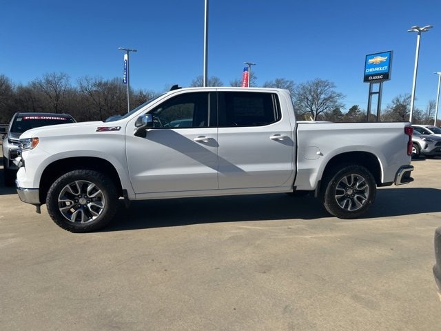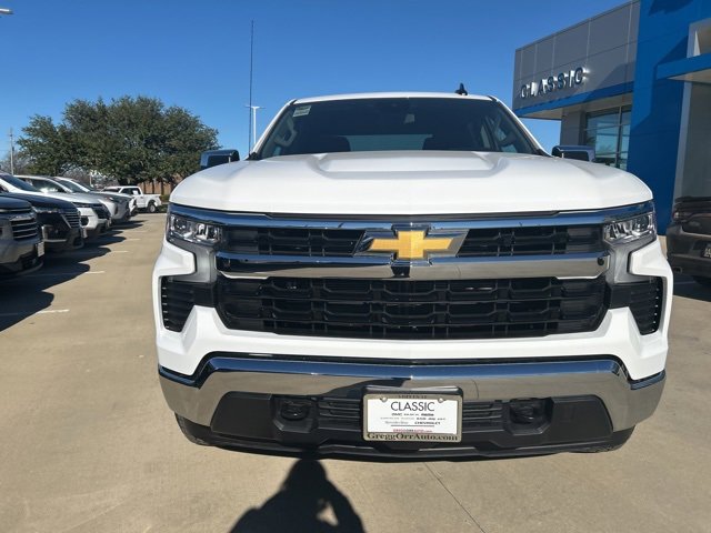 Summit White 2026 Chevrolet Silverado 1500 LT 4WD 10-Speed Automatic EcoTec3 5.3L V8 The 2026 Chevrolet Silverado 1500 comes with the following features; Convenience Package (120-Volt Bed Mounted Power Outlet, 120-Volt Interior Power Outlet, Dual-Zone Automatic Climate Control, Heated Steering Wheel, LED Cargo Area Lighting, Manual Tilt/Telescoping Steering Column, and Wrapped Steering Wheel), Remote Start Package (Electric Rear-Window Defogger and Remote Vehicle Starter System), Standard Suspension Package, Trailering Package (Hitch Guidance), 10-Speed Automatic, 4WD, Jet Black Cloth, 12.3 Multicolor Reconfigurable Digital Display, 220 Amp Alternator, 4-Wheel Disc Brakes, 40/20/40 Front Split-Bench Seat, 6 Speakers, 6-Speaker Audio System, ABS brakes, Air Conditioning, All-Star Edition, Alloy wheels, AM/FM radio: SiriusXM with 360L, Apple CarPlay/Android Auto, Auto High-beam Headlights, Auto-Locking Rear Differential, Automatic Emergency Braking, Automatic temperature control, Bluetooth® For Phone, Brake assist, Bumpers: chrome, Chrome Mirror Caps, Cloth Seat Trim, Color-Keyed Carpeting Floor Covering, Compass, Deep-Tinted Glass, Delay-off headlights, Driver door bin, Driver vanity mirror, Dual front impact airbags, Dual front side impact airbags, Electronic Cruise Control, Electronic Stability Control, Emergency communication system: OnStar, Following Distance Indicator, Forward Collision Alert, Front anti-roll bar, Front Center Armrest w/Storage, Front dual zone A/C, Front Frame-Mounted Black Recovery Hooks, Front Pedestrian Braking, Front reading lights, Front Rubberized Vinyl Floor Mats, Front wheel independent suspension, Fully automatic headlights, HD Rear Vision Camera, Heated door mirrors, Heated front seats, Heated Power-Adjustable Outside Mirrors, Heated steering wheel, Illuminated entry, Integrated Trailer Brake Controller, Low tire pressure warning, Occupant sensing airbag, OnStar Services Capable, Outside temperature display, Overhead airbag, Overhead console, Panic alarm, Passenger door bin, Passenger vanity mirror, Power door mirrors, Power driver seat, Power steering, Power windows, Premium audio system: Chevrolet Infotainment 3 Premium, Radio data system, Radio: Chevrolet Infotainment 3 Premium System, Rear reading lights, Rear Rubberized-Vinyl Floor Mats, Rear step bumper, Rear window defroster, Remote keyless entry, Security system, Speed control, Speed-sensing steering, Split folding rear seat, Standard Tailgate, Steering Wheel Audio Controls, Steering wheel mounted audio controls, Tachometer, Teen Driver, Telescoping steering wheel, Tilt steering wheel, Tire Pressure Monitoring System, Traction control, Trip computer, Variably intermittent wipers, Voltmeter, Wheels: 17 x 8 Bright Silver Painted Aluminum, and Wi-Fi Hot Spot Capable. 10-Speed Automatic, 4WD, Jet Black Cloth.