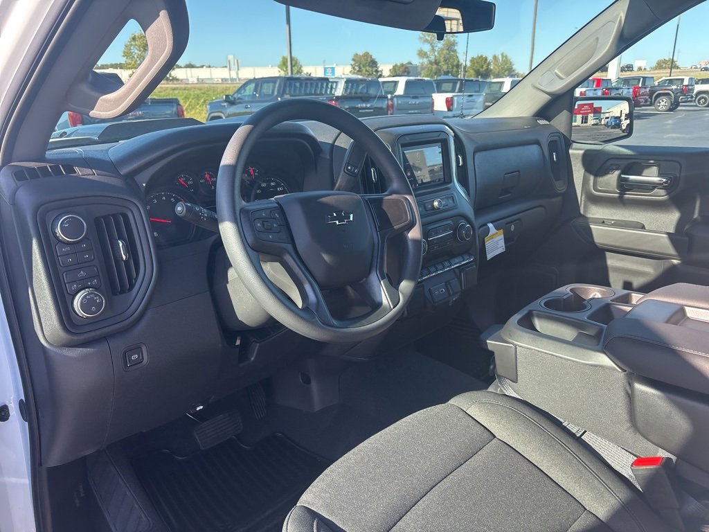 Pricing excludes tax, tag, license fees, dealers $129 doc fee, $1,995 in dealer addendum. See dealer for exact pricing. Some discounts require dealership to arrange financing, price not available with 0% or incentivized rates. See dealer for details. This 2026 Chevrolet Silverado 1500 comes equipped with these features Custom Convenience Package (Electric Rear-Window Defogger, EZ Lift Power Lock & Release Tailgate, LED Cargo Area Lighting, Remote Vehicle Starter System, and Theft Deterrent System (Unauthorized Entry)), Dark Essentials Package (LPO) (Black Name Plates (LPO)), Preferred Equipment Group 2CX (10-Way Power Driver Seat w/Lumbar, 120-Volt Bed Mounted Power Outlet, 120-Volt Interior Power Outlet, 3.5 Monochromatic Display Driver Info Center, Auto-Locking Rear Differential, Bluetooth® For Phone, Color-Keyed Carpeting Floor Covering, Deep-Tinted Glass, Dual Rear USB Ports (Charge Only), Electronic Cruise Control, Front Rubberized Vinyl Floor Mats, HD Rear Vision Camera, Manual Tilt Wheel Steering Column, OnStar Services Capable, Performance Red Recovery Hooks, Power Front Windows w/Driver Express Up/Down, Power Front Windows w/Passenger Express Down, Power Rear Windows w/Express Down, Rear 60/40 Folding Bench Seat (Folds Up), Rear Rubberized-Vinyl Floor Mats, Remote Keyless Entry, SiriusXM Trial Subscription, Standard Tailgate, Teen Driver, Tire Pressure Monitoring System, and Wi-Fi Hot Spot Capable), Suspension Package (Heavy-Duty Air Filter and Hill Descent Control), Trailering Package (Hitch Guidance), TurboMax Blackout Package (4 Black Round Assist Steps (LPO) and Black Chrome Exhaust Tip (LPO)), 8-Speed Automatic, 4WD, Jet Blk Clth Cloth, 220 Amp Alternator, 3.42 Rear Axle Ratio, 4-Wheel Disc Brakes, 40/20/40 Front Split-Bench Seat, 6 Speakers, 6-Speaker Audio System, ABS brakes, Air Conditioning, Alloy wheels, AM/FM radio: SiriusXM, Apple CarPlay/Android Auto, Auto High-beam Headlights, Automatic Emergency Braking, Brake assist, Chevytec Spray-On Black Bedliner, Cloth Seat Trim, Compass, Delay-off headlights, Driver door bin, Driver vanity mirror, Dual front impact airbags, Dual front side impact airbags, Electronic Stability Control, Emergency communication system: OnStar, Following Distance Indicator, Forward Collision Alert, Front anti-roll bar, Front Center Armrest w/Storage, Front Frame-Mounted Black Recovery Hooks, Front Pedestrian Braking, Front reading lights, Front wheel independent suspension, Fully automatic headlights, Heated door mirrors, Illuminated entry, IntelliBeam Automatic High Beam On/Off, Lane Keep Assist w/Lane Departure Warning, Low tire pressure warning, Occupant sensing airbag, Outside temperature display, Overhead airbag, Overhead console, Panic alarm, Passenger door bin, Passenger vanity mirror, Power door mirrors, Power driver seat, Power steering, Power windows, Premium audio system: Chevrolet Infotainment 3, Radio data system, Radio: Chevrolet Infotainment 3 System, Rear reading lights, Rear step bumper, Rear window defroster, Remote keyless entry, Security system, Single Outlet Exhaust, Speed control, Speed-sensing steering, Split folding rear seat, Tachometer, Tilt steering wheel, Traction control, Trip computer, Variably intermittent wipers, Voltmeter, and Wheels: 18 x 8.5 Black Painted Aluminum.