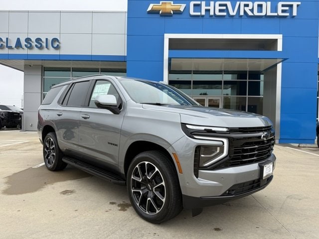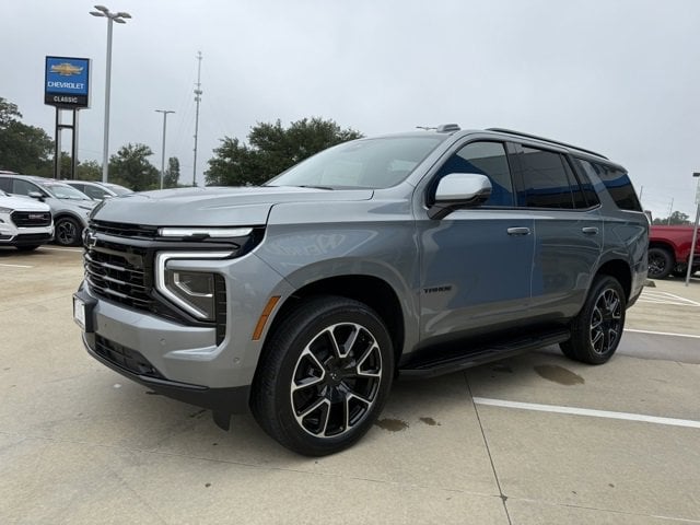 Sterling Gray Metallic 2026 Chevrolet Tahoe RST 4WD 10-Speed Automatic with Overdrive EcoTec3 5.3L V8 The 2026 Chevrolet Tahoe comes with the following features; Comfort Package (2nd Row Pwr Release 60/40 Split-Folding Bench Seat, 3rd Row 60/40 Power-Folding Split-Bench Seat, Bose 10-Speaker Centerpoint Surround Audio Sys Ft, Heated 2nd Row Outboard Seats, Heated Steering Wheel, LED Headlamps w/LED Daytime Running Lamps, LED Tail Lamps, Memory Settings, and Outside Heated Power-Adjustable Mirrors), License Plate Front Mounting Package, Preferred Equipment Group 1SP (1st & 2nd Row Color-Keyed Carpeted Floor Mats, 3-Spoke Wrapped Steering Wheel, 3rd Row Manual 60/40 Split-Folding Bench Seats, Auto-Dimming Inside Rear-View Mirror, Bright Front & Rear Door Sill Plates, Color-Keyed Carpeting Floor Covering, Dual Exhaust System, Floor Console w/Storage Area, Front LED Fog Lamps, Frontal Driver & Outboard Passenger Airbags, Interior Camera, Key Card, Memory Settings for Driver, Rear Power Liftgate, Remote Start, RST Exterior Features, SiriusXM w/360L Trial Subscription, Universal Home Remote, USB Ports, and Wireless Phone Charging), 4WD, Red Leather, 2-Way Power Driver Lumbar Seat Adjuster, 2-Way Power Front Passenger Lumbar Seat Adjuster, 3.23 Rear Axle Ratio, 3rd row seats: split-bench, 4-Wheel Disc Brakes, 6 Speakers, 6-Speaker Audio System Feature, 8-Way Power Driver Seat Adjuster, 8-Way Power Front Passenger Seat Adjuster, ABS brakes, Air Conditioning, Alloy wheels, AM/FM radio: SiriusXM with 360L, Apple CarPlay/Android Auto, Auto High-beam Headlights, Auto-dimming Rear-View mirror, Automatic temperature control, Brake assist, Bumpers: body-color, Compass, Delay-off headlights, Driver door bin, Driver vanity mirror, Dual front impact airbags, Dual front side impact airbags, Dual-Pane Power Panoramic Sunroof, Electronic Stability Control, Emergency communication system: OnStar and Chevrolet connected services capable, Exterior Parking Camera Rear, Four wheel independent suspension, Front anti-roll bar, Front Bucket Seats, Front Center Armrest, Front dual zone A/C, Front fog lights, Front reading lights, Fully automatic headlights, Garage door transmitter, Heated door mirrors, Heated Driver & Front Passenger Seats, Heated front seats, Illuminated entry, Low tire pressure warning, Memory seat, Navigation system: Google built-in compatibility (select service plan required, terms and limitations apply), Occupant sensing airbag, Outside temperature display, Overhead airbag, Overhead console, Panic alarm, Passenger door bin, Passenger vanity mirror, Perforated Leather Seat Trim, Power door mirrors, Power driver seat, Power Liftgate, Power passenger seat, Power Release 2nd Row Bucket Seats, Power steering, Power windows, Premium audio system: Chevrolet Infotainment 3 Premium, Premium Smooth Ride Suspension, Radio data system, Radio: 17.7 Diagonal Advanced Color LCD Display, Rain sensing wipers, Rear air conditioning, Rear anti-roll bar, Rear reading lights, Rear seat center armrest, Rear window defroster, Rear window wiper, Remote keyless entry, Security system, Set of 4 Wheel Locks (LPO), Speed control, Speed-sensing steering, Split folding rear seat, Spoiler, Steering wheel mounted audio controls, Tachometer, Telescoping steering wheel, Tilt steering wheel, Traction control, Trip computer, Variably intermittent wipers, Voltmeter, and Wheels: 22 x 9 Bright Machined. 4WD, Red Leather.