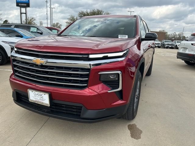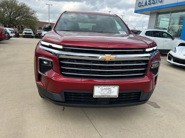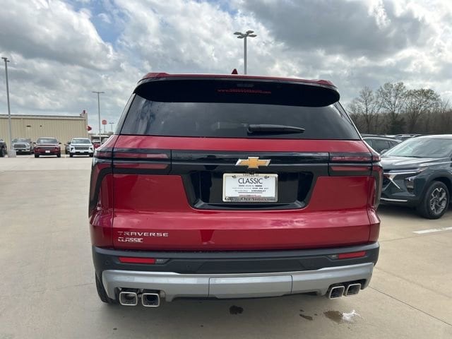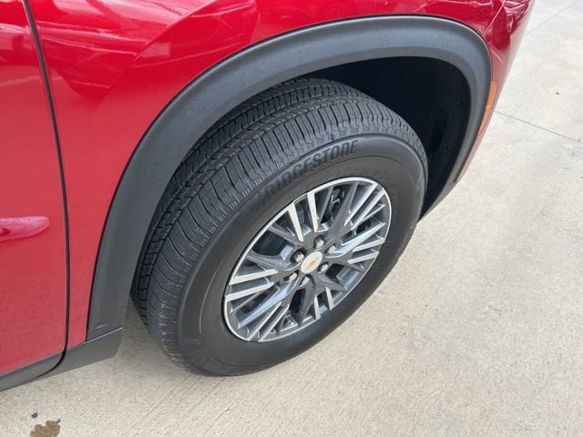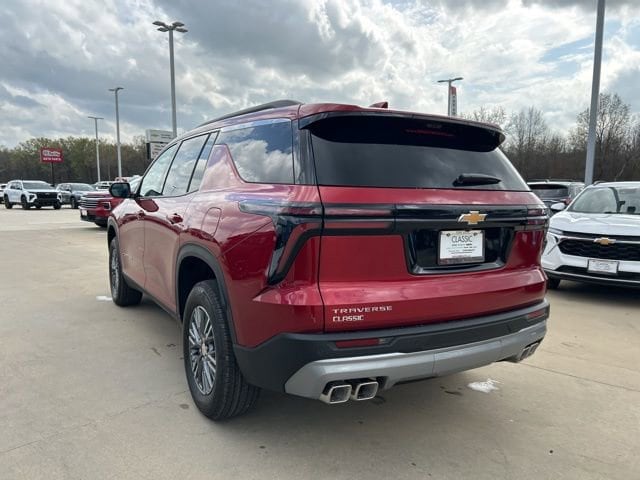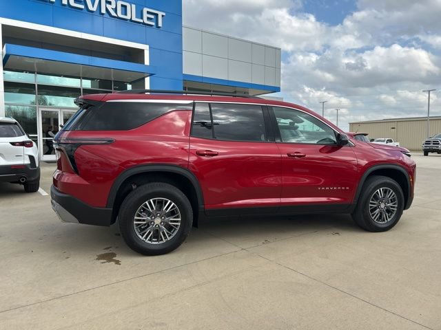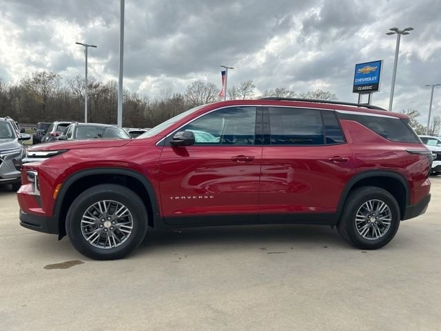 Radiant Red 2026 Chevrolet Traverse LT FWD 8-Speed Automatic 2.5L DOHC 20/26 City/Highway MPG The 2026 Chevrolet Traverse comes with the following features; 3rd row seats: split-bench, 4-Way Manual Front Passenger Seat Adjuster, 4-Wheel Disc Brakes, 6 Speakers, 6-Speaker Audio System Feature, 8-Way Power Driver Seat Adjuster, ABS brakes, Air Conditioning, Alloy wheels, AM/FM radio: SiriusXM with 360L, Apple CarPlay/Android Auto, Auto High-beam Headlights, Automatic temperature control, Brake assist, Bumpers: body-color, Child-Seat-Sensing Airbag, Compass, Delay-off headlights, Driver door bin, Driver vanity mirror, Dual front impact airbags, Dual front side impact airbags, Electronic Stability Control, Emergency communication system: OnStar, Four wheel independent suspension, Front anti-roll bar, Front Bucket Seats, Front Center Armrest, Front dual zone A/C, Front reading lights, Fully automatic headlights, Heated door mirrors, Heated Driver and Front Passenger Seats, Heated front seats, Heated steering wheel, Illuminated entry, Low tire pressure warning, Navigation System, Occupant sensing airbag, Outside temperature display, Overhead airbag, Overhead console, Panic alarm, Passenger door bin, Passenger vanity mirror, Power door mirrors, Power driver seat, Power Liftgate, Power steering, Power windows, Premium Cloth Seat Trim, Radio data system, Radio: : Audio System w/17.7 Diagonal Display, Rear air conditioning, Rear anti-roll bar, Rear reading lights, Rear window defroster, Rear window wiper, Remote keyless entry, Security system, SiriusXM with 360L Trial Subscription, Speed control, Speed-sensing steering, Spoiler, Steering wheel mounted audio controls, Tachometer, Telescoping steering wheel, Tilt steering wheel, Traction control, Trip computer, Turn signal indicator mirrors, Variably intermittent wipers, Voltmeter, and Wheels: 18 Grazen Metallic Machined-Face Aluminum.