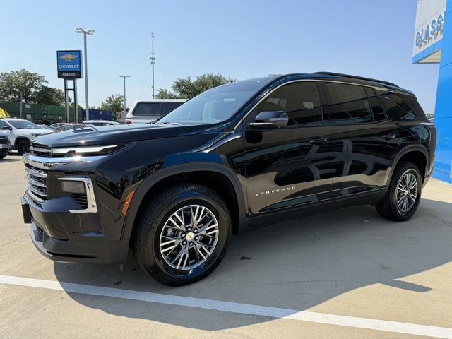 Black 2026 Chevrolet Traverse LT FWD 8-Speed Automatic 2.5L DOHC 20/27 City/Highway MPG The 2026 Chevrolet Traverse comes with the following features; Driver Confidence Package (HD Surround Vision, Key Card, Power Outlet, Rear Camera Mirror, Rear Pedestrian Alert, and Traffic Sign Recognition), Preferred Equipment Group 1LT, 3rd row seats: split-bench, 4-Way Manual Front Passenger Seat Adjuster, 4-Wheel Disc Brakes, 6 Speakers, 6-Speaker Audio System Feature, 8-Way Power Driver Seat Adjuster, ABS brakes, Air Conditioning, Alloy wheels, AM/FM radio: SiriusXM with 360L, Apple CarPlay/Android Auto, Auto High-beam Headlights, Automatic temperature control, Brake assist, Bumpers: body-color, Child-Seat-Sensing Airbag, Compass, Delay-off headlights, Driver door bin, Driver vanity mirror, Dual front impact airbags, Dual front side impact airbags, Electronic Stability Control, Emergency communication system: OnStar, Four wheel independent suspension, Front anti-roll bar, Front Bucket Seats, Front Center Armrest, Front dual zone A/C, Front reading lights, Fully automatic headlights, Heated door mirrors, Heated Driver & Front Passenger Seats, Heated front seats, Heated steering wheel, Illuminated entry, Low tire pressure warning, Navigation System, Occupant sensing airbag, Outside temperature display, Overhead airbag, Overhead console, Panic alarm, Passenger door bin, Passenger vanity mirror, Power door mirrors, Power driver seat, Power Liftgate, Power steering, Power windows, Premium Cloth Seat Trim, Radio data system, Radio: Audio System w/17.7 Diagonal Display, Rear air conditioning, Rear anti-roll bar, Rear reading lights, Rear window defroster, Rear window wiper, Remote keyless entry, Security system, SiriusXM w/360L Trial Subscription, Speed control, Speed-sensing steering, Spoiler, Steering wheel mounted audio controls, Tachometer, Telescoping steering wheel, Tilt steering wheel, Traction control, Trip computer, Turn signal indicator mirrors, Variably intermittent wipers, Voltmeter, and Wheels: 18 Grazen Metallic Machined-Face Aluminum.