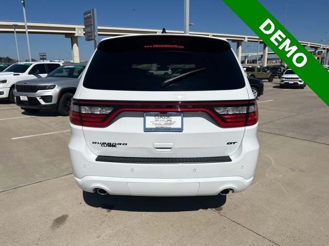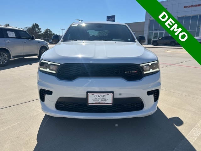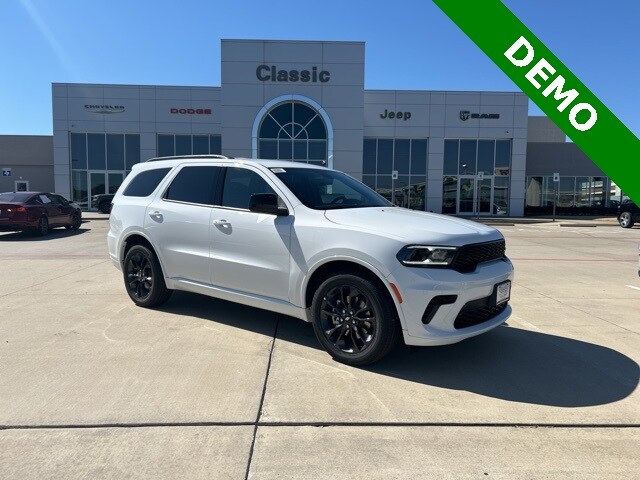 Classic CDJR in Texarkana is proud to offer this wonderful 2025 Dodge Durango in White Knuckle Clearcoat. This 2025 Dodge Durango comes with the following features; Blacktop Package (Black Roof Rails, Gloss Black Badges, Gloss Black Exterior Mirrors, GT Gloss Black Badging, Integrated Roof Rail Crossbars, Satin Black Dodge Tail Lamp Badge, and Wheels: 20" x 8.0" Black Noise Aluminum), Quick Order Package 2BD GT, 3.27 Rear Axle Ratio, 3rd row seats: split-bench, 4-Wheel Disc Brakes, 6 Speakers, ABS brakes, Air Conditioning, Alloy wheels, AM/FM radio: SiriusXM w/360L, Apple CarPlay/Android Auto, Auto-dimming Rear-View mirror, Auto-leveling suspension, Automatic temperature control, Brake assist, Bumpers: body-color, Cloth Bucket Seats w/Shift Insert, Compass, Delay-off headlights, Driver door bin, Driver vanity mirror, Dual front impact airbags, Dual front side impact airbags, Electronic Stability Control, Emergency communication system: Dodge Connect, Four wheel independent suspension, Front anti-roll bar, Front Bucket Seats, Front Center Armrest w/Storage, Front dual zone A/C, Front License Plate Bracket, Front reading lights, Fully automatic headlights, Garage door transmitter, Heated door mirrors, Heated front seats, Heated steering wheel, Illuminated entry, Knee airbag, Leather steering wheel, Low tire pressure warning, Navigation System, Occupant sensing airbag, Outside temperature display, Overhead airbag, Overhead console, Panic alarm, ParkView Rear Back-Up Camera, Passenger door bin, Passenger vanity mirror, Power door mirrors, Power driver seat, Power Liftgate, Power steering, Power windows, Radio data system, Radio: Uconnect 5 Nav w/10.1" Display, Rear air conditioning, Rear anti-roll bar, Rear Load Leveling Suspension, Rear reading lights, Rear seat center armrest, Rear window defroster, Rear window wiper, Remote keyless entry, Speed control, Speed-sensing steering, Speed-Sensitive Wipers, Split folding rear seat, Spoiler, Sport steering wheel, Steering wheel mounted audio controls, Tachometer, Telescoping steering wheel, Tilt steering wheel, Traction control, Trip computer, Variably intermittent wipers, Voltmeter, and Wheels: 18" x 8.0" Painted Aluminum.