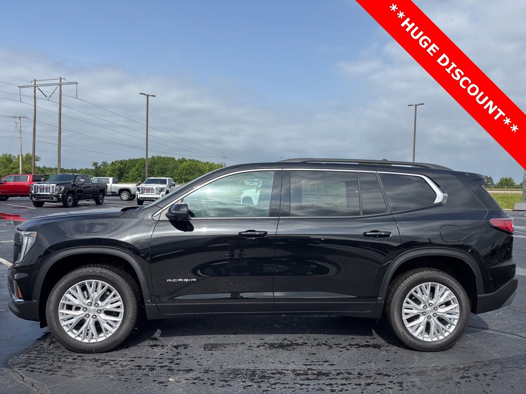 Pricing excludes tax, tag, license fees, dealers $129 doc fee, $1,995 in dealer addendum. See dealer for exact pricing. Some discounts require dealership to arrange financing, price not available with 0% or incentivized rates. See dealer for details. This 2025 GMC Acadia comes equipped with these features Elevation Premium Package (3-Channel Programmable Universal Home Remote, 6-Way Power Front Passenger Seat Adjuster, 7-Passenger Seating (2-2-3 Seating Configuration), Auto-Dimming Inside Rear-View Mirror, CoreTec Seat Trim, Front Passenger Power Lumbar Seat Adjuster, and Wheels: 20 x 8 Bright Silver Aluminum), Luxury Package (8 Diagonal Head-Up Display, Heated Rear Outboard Seating Positions, Heated Wiper Park, and Laminated Acoustic Glass), Preferred Equipment Group 4SC, FWD, After Dark Cloth, 12 Speakers, 18 x 7.5 Aluminum Wheels, 2-Way Driver Power Lumbar Seat Adjuster, 3.49 Final Drive Axle Ratio, 3rd row seats: split-bench, 4-Way Manual Front Passenger Seat Adjuster, 4-Wheel Disc Brakes, 8-Passenger Seating (2-3-3 Seating Configuration), 8-Way Power Driver Seat Adjuster, ABS brakes, Air Conditioning, Alloy wheels, AM/FM radio: SiriusXM with 360L, Apple CarPlay/Android Auto, Auto High-beam Headlights, Auto-dimming Rear-View mirror, Automatic temperature control, Bodyside moldings, Bose Premium 12-Speaker System w/Sub-Woofer, Brake assist, Bumpers: body-color, Cloth Seat Trim, Compass, Delay-off headlights, Driver door bin, Driver vanity mirror, Dual front impact airbags, Dual front side impact airbags, Electronic Stability Control, Emergency communication system: OnStar Services capable, Exterior Parking Camera Rear, Four wheel independent suspension, Front anti-roll bar, Front Bucket Seats, Front Center Armrest, Front dual zone A/C, Front fog lights, Front reading lights, Fully automatic headlights, Heated door mirrors, Heated Driver & Front Passenger Seats, Heated front seats, Heated steering wheel, Illuminated entry, Leather steering wheel, Low tire pressure warning, Navigation System, Occupant sensing airbag, Outside temperature display, Overhead airbag, Overhead console, Panic alarm, Passenger door bin, Passenger vanity mirror, Power door mirrors, Power driver seat, Power Liftgate, Power steering, Power windows, Radio data system, Radio: 15 Premium GMC Infotainment System, Rear air conditioning, Rear anti-roll bar, Rear reading lights, Rear seat center armrest, Rear side impact airbag, Rear window defroster, Rear window wiper, Remote keyless entry, Security system, SiriusXM w/360L, Speed control, Speed-sensing steering, Split folding rear seat, Spoiler, Sport steering wheel, Steering wheel mounted audio controls, Tachometer, Telescoping steering wheel, Tilt steering wheel, Traction control, Trip computer, Turn signal indicator mirrors, Variably intermittent wipers, and Voltmeter.