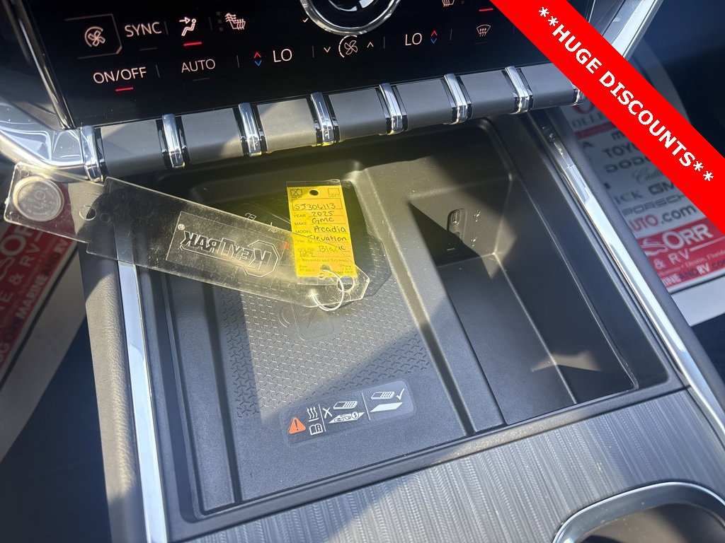 Pricing excludes tax, tag, license fees, dealers $129 doc fee, $1,995 in dealer addendum. See dealer for exact pricing. Some discounts require dealership to arrange financing, price not available with 0% or incentivized rates. See dealer for details. This 2025 GMC Acadia comes equipped with these features Elevation Premium Package (3-Channel Programmable Universal Home Remote, 6-Way Power Front Passenger Seat Adjuster, 7-Passenger Seating (2-2-3 Seating Configuration), Auto-Dimming Inside Rear-View Mirror, CoreTec Seat Trim, Front Passenger Power Lumbar Seat Adjuster, and Wheels: 20 x 8 Bright Silver Aluminum), Luxury Package (8 Diagonal Head-Up Display, Heated Rear Outboard Seating Positions, Heated Wiper Park, and Laminated Acoustic Glass), Preferred Equipment Group 4SC, FWD, After Dark Cloth, 12 Speakers, 18 x 7.5 Aluminum Wheels, 2-Way Driver Power Lumbar Seat Adjuster, 3.49 Final Drive Axle Ratio, 3rd row seats: split-bench, 4-Way Manual Front Passenger Seat Adjuster, 4-Wheel Disc Brakes, 8-Passenger Seating (2-3-3 Seating Configuration), 8-Way Power Driver Seat Adjuster, ABS brakes, Air Conditioning, Alloy wheels, AM/FM radio: SiriusXM with 360L, Apple CarPlay/Android Auto, Auto High-beam Headlights, Auto-dimming Rear-View mirror, Automatic temperature control, Bodyside moldings, Bose Premium 12-Speaker System w/Sub-Woofer, Brake assist, Bumpers: body-color, Cloth Seat Trim, Compass, Delay-off headlights, Driver door bin, Driver vanity mirror, Dual front impact airbags, Dual front side impact airbags, Electronic Stability Control, Emergency communication system: OnStar Services capable, Exterior Parking Camera Rear, Four wheel independent suspension, Front anti-roll bar, Front Bucket Seats, Front Center Armrest, Front dual zone A/C, Front fog lights, Front reading lights, Fully automatic headlights, Heated door mirrors, Heated Driver & Front Passenger Seats, Heated front seats, Heated steering wheel, Illuminated entry, Leather steering wheel, Low tire pressure warning, Navigation System, Occupant sensing airbag, Outside temperature display, Overhead airbag, Overhead console, Panic alarm, Passenger door bin, Passenger vanity mirror, Power door mirrors, Power driver seat, Power Liftgate, Power steering, Power windows, Radio data system, Radio: 15 Premium GMC Infotainment System, Rear air conditioning, Rear anti-roll bar, Rear reading lights, Rear seat center armrest, Rear side impact airbag, Rear window defroster, Rear window wiper, Remote keyless entry, Security system, SiriusXM w/360L, Speed control, Speed-sensing steering, Split folding rear seat, Spoiler, Sport steering wheel, Steering wheel mounted audio controls, Tachometer, Telescoping steering wheel, Tilt steering wheel, Traction control, Trip computer, Turn signal indicator mirrors, Variably intermittent wipers, and Voltmeter.