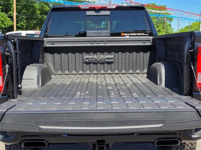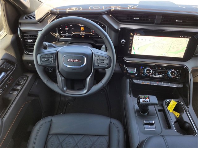 This 2025 GMC Sierra 1500 comes equipped with, 10-Speed Automatic, 4WD, Jet Black With Kalahari Accents Leather, 120-Volt Bed Mounted Power Outlet, 120-Volt Interior Power Outlet, 2 Charge/Data USB Ports Inside Center Console, 2 Type-C Charge-Only Rear USB Ports, 2 USB Ports, 220 Amp Alternator, Alloy wheels, AT4 Preferred Package, AT4 Premium Package, Auto-Locking Rear Differential, Bed View Camera, Black Chrome Grille Insert Bars, Color-Keyed Carpeting Floor Covering, Deep-Tinted Glass, Electric Rear-Window Defogger, Floor-Mounted Center Console, Front Prem Floor Liners w/Removable Carpet Insert, Front Rain-Sensing Wipers, HD Surround Vision, Heated 2nd Row Outboard Seats, Heated Driver & Front Outboard Passenger Seating, Heavy-Duty Air Filter, Hill Descent Control, Hitch Guidance, Hitch View, In-Vehicle Trailering System App, Integrated Trailer Brake Controller, Keyless Open & Start, LED Cargo Area Lighting, Multicolor 15 Diagonal Head-Up Display, Navigation System, Off-Road High Clearance Step (LPO), OnStar Services Capable, Perimeter Lighting, Power Door Locks, Power Front Passenger Windows w/Express Up/Down, Power Front Windows w/Driver Express Up/Down, Power Rake & Telescoping Steering Column, Power Rear Windows w/Express Down, Power Sliding Rear Window w/Rear Defogger, Power Sunroof, Preferred Equipment Group 4SB, Premium Bose 7-Speaker Sound System, Push Button Start, Rear Camera Mirror, Rear Cross Traffic Braking, Rear Pedestrian Detection, Rear Prem Floor Liners w/Removable Carpet Insert, Rear Wheelhouse Liners, Red Recovery Hooks, Remote Vehicle Starter System, SiriusXM w/360L Trial Subscription, Spray-On Pickup Bedliner w/GMC Logo, Steering Wheel Audio Controls, Technology Package, Theft Deterrent System (Unauthorized Entry), Trailer Camera Provisions, Trailer Side Blind Zone Alert, Trailering Package, Ultrasonic Front & Rear Park Assist, Universal Home Remote, Ventilated Driver & Front Passenger Seats, Wheels: 20 x 9 Machined Aluminum, Wi-Fi Hotspot Capable, Wireless Charging.