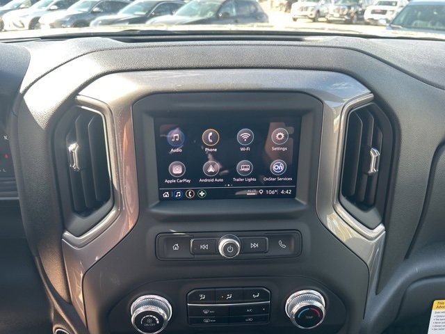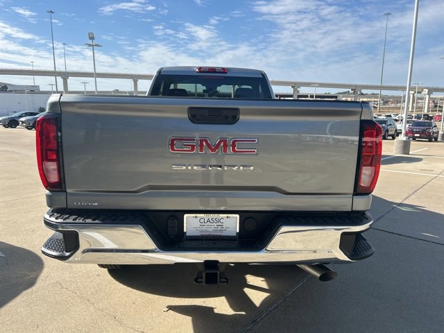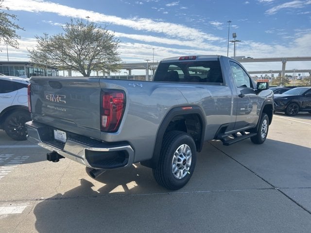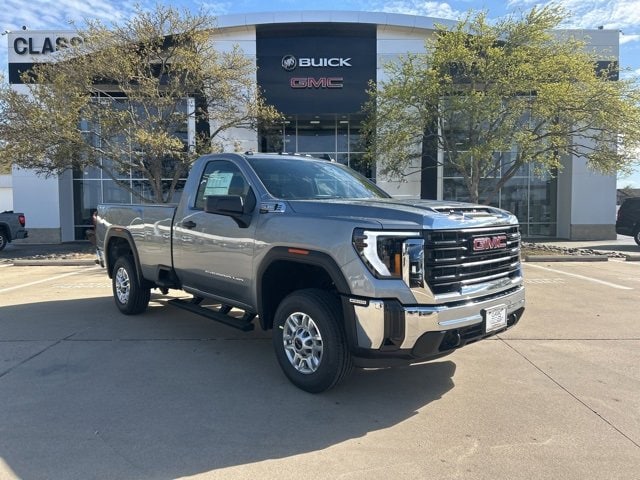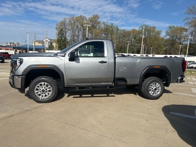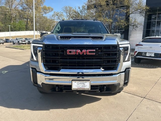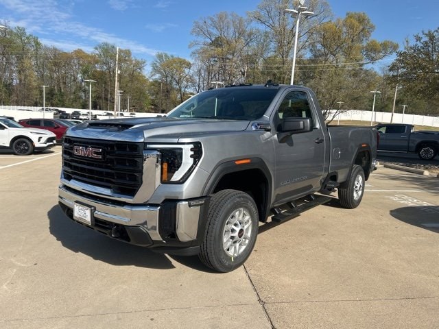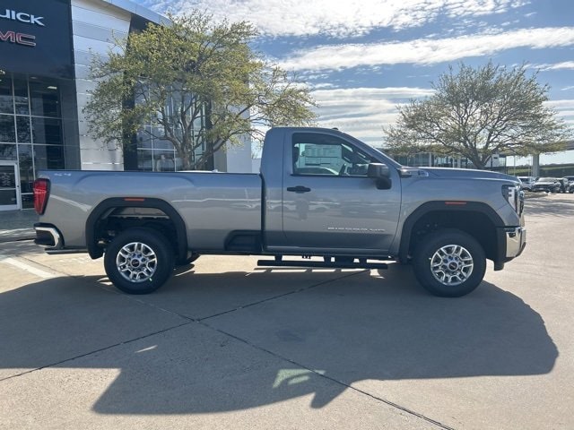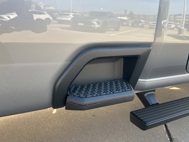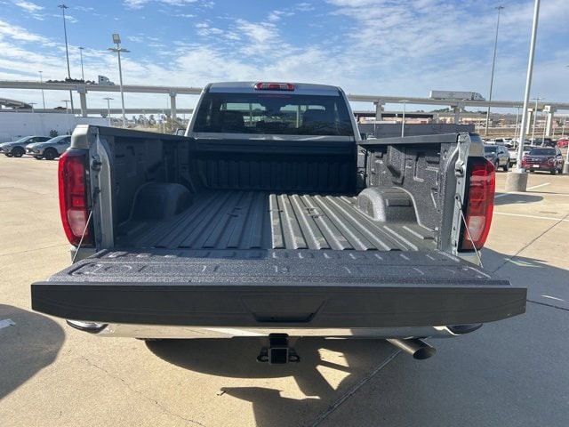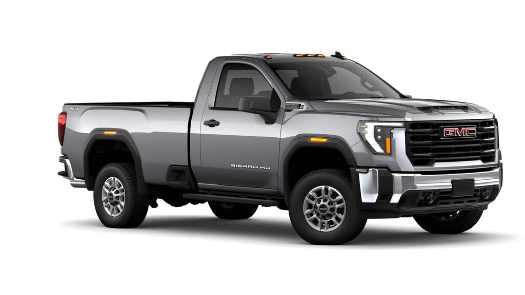 This 2025 GMC Sierra 2500HD comes equipped with the following features Convenience Package (Deep-Tinted Glass, Electric Rear-Window Defogger, EZ Lift Power Lock & Release Tailgate, and LED Cargo Area Lighting), Gooseneck/5th Wheel Prep Package (Spray-On Pickup Bedliner), Heavy Duty Front Spring/Camper Package, Preferred Equipment Group 1SA (2 Charge/Data USB Ports, 2-Speed Electronic Shift Transfer Case, Chrome Grille w/Flat Black Grille Insert Bars, OnStar Services Capable, Push Button Start, Remote Keyless Entry, Solar Absorbing Tinted Glass, and Wireless Phone Projection), Suspension Package, 10-Speed Automatic, 4WD, Jet Black Vinyl, 120-Volt Bed Mounted Power Outlet, 120-Volt Instrument Panel Power Outlet, 17 Machined Aluminum Wheels, 2 Speakers, 2-Speaker Audio System Feature, 3.73 Rear Axle Ratio, 4-Way Manual Driver Seat Adjuster, 4-Way Manual Passenger Seat Adjuster, 4-Wheel Disc Brakes, ABS brakes, Air Conditioning, AM/FM radio, Apple CarPlay/Android Auto, Auto High-beam Headlights, Automatic Emergency Braking, Black Assist Step (LPO), Brake assist, Buckle to Drive, Bumpers: chrome, Compass, Delay-off headlights, Driver door bin, Dual front impact airbags, Dual front side impact airbags, Electronic Stability Control, Emergency communication system: OnStar, Following Distance Indicator, Forward Collision Alert, Front 40/20/40 Split-Bench Seats, Front anti-roll bar, Front Center Armrest w/Storage, Front License Plate Kit, Front Pedestrian Braking, Front reading lights, Front wheel independent suspension, Fully automatic headlights, Heated Power-Adjustable Outside Mirrors, Heavy-Duty 80 Amp Battery, Illuminated entry, IntelliBeam Automatic High Beam On/Off, Lane Departure Warning System, LED Smoked Amber Roof Marker Lamps, Low tire pressure warning, Occupant sensing airbag, Outside temperature display, Overhead airbag, Overhead console, Panic alarm, Passenger door bin, Passenger vanity mirror, Pickup Box, Power steering, Power windows, Radio: AM/FM w/GMC Infotainment System, Rear step bumper, Remote keyless entry, Speed control, Tachometer, Tilt steering wheel, Traction control, Trip computer, Variably intermittent wipers, Vinyl Seat Trim, Voltmeter, and Wheels: 17 Silver Painted Steel. 10-Speed Automatic, 4WD, Jet Black Vinyl. 2025 GMC Sierra 2500HD Sterling Metallic Pro 4WD 10-Speed Automatic 6.6L V8