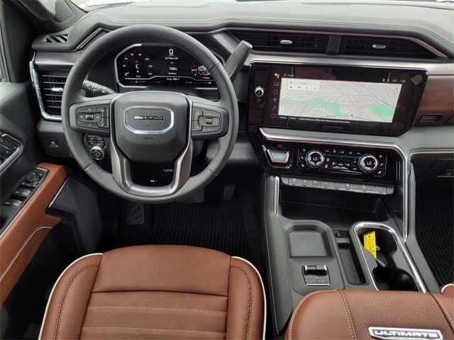 10-Speed Automatic, 4WD, Alpine Umber Leather, 120-Volt Bed Mounted Power Outlet, 120-Volt Instrument Panel Power Outlet, 2 Charge-Only Rear USB Ports, 2 Charge/Data USB Ports Inside Center Console, 2 USB Ports, 2-Speed Active Transfer Case, Alloy wheels, Auto-Dimming Inside Rearview Mirror w/Camera, Bed View Camera w/2 Trailer Camera Provisions, Bose Premium Series 12-Speaker System, Deep-Tinted Glass, Electric Rear-Window Defogger, Floor-Mounted Center Console, Front Rain-Sensing Wipers, Gooseneck/5th Wheel Prep Package, HD Surround Vision, Heated 2nd Row Outboard Seats, Heated Driver & Front Outboard Passenger Seats, Heavy Duty Front Spring/Camper Package, Hill Descent Control, Hitch Guidance w/Hitch View, Hitch Package (LPO), In-Vehicle Trailering App, Keyless Open & Start, LED Cargo Area Lighting, LED Smoked Amber Roof Marker Lamps, Manual Tilt-Wheel/Telescoping Steering Column, Multicolor 15 Diagonal Head-Up Display, Power Front Windows w/Passenger Express Up/Down, Power Sliding Rear Window w/Defogger, Power Sunroof, Preferred Equipment Group 5SB, ProGrade Trailering System, Push Button Start, Rear Cross Traffic Alert, Rear Wheelhouse Liners, Remote Vehicle Starter System, Safety Alert Seat, Signature Denali Ultimate Grille in Vader Chrome, SiriusXM w/360L Trial Subscription, Spray-On Pickup Bedliner w/GMC Logo, Steering Wheel Audio Controls, Technology Package, Trailer Camera Provisions, Trailer Side Blind Zone Alert, Trailer Tire Pressure Monitor Sensors, Ultrasonic Front & Rear Park Assist, Unauthorized Entry Theft-Deterrent System, Universal Home Remote, Ventilated Driver & Front Passenger Seats, Wheels: 20 Ultra-Bright Machined Aluminum, Wireless Charging, Wireless Phone Projection, X31 Off-Road Package.