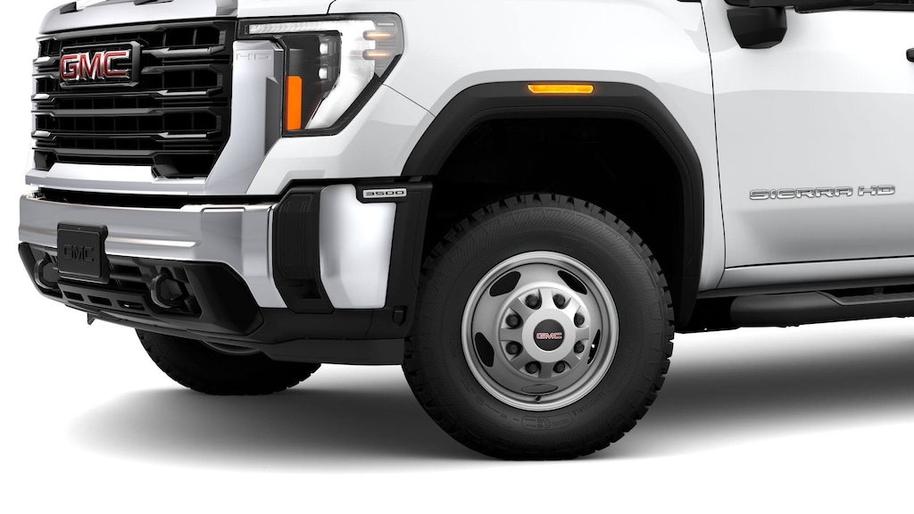 This 2025 GMC Sierra 3500HD comes equipped with the following features Convenience Package (Deep-Tinted Glass, Electric Rear-Window Defogger, EZ Lift Power Lock & Release Tailgate, and LED Cargo Area Lighting), Gooseneck/5th Wheel Prep Package (Spray-On Pickup Bedliner), Preferred Equipment Group 1SA (2 Charge/Data USB Ports, 2-Speed Electronic Shift Transfer Case, Chrome Grille w/Flat Black Grille Insert Bars, Push Button Start, Remote Keyless Entry, Solar Absorbing Tinted Glass, and Wireless Phone Projection), Suspension Package, 10-Speed Automatic, 4WD, Jet Black Vinyl, 120-Volt Bed Mounted Power Outlet, 120-Volt Instrument Panel Power Outlet, 2 Charge-Only Rear USB Ports, 220 Amp Alternator, 4-Way Manual Driver Seat Adjuster, 4-Way Manual Passenger Seat Adjuster, 4-Wheel Disc Brakes, 4 Round Black Tubular Assist Steps (LPO), 6 Speakers, 6-Speaker Audio System Feature, ABS brakes, Air Conditioning, AM/FM radio, Auto High-beam Headlights, Automatic Emergency Braking, Brake assist, Buckle to Drive, Bumpers: chrome, Compass, Delay-off headlights, Driver door bin, Dual front impact airbags, Dual front side impact airbags, Electronic Stability Control, Engine Block Heater, Exhaust Brake, Exterior Parking Camera Rear, Following Distance Indicator, Forward Collision Alert, Front 40/20/40 Split-Bench Seats w/Lockable Storage, Front anti-roll bar, Front Center Armrest w/Storage, Front License Plate Kit, Front Pedestrian Braking, Front reading lights, Front wheel independent suspension, Fully automatic headlights, Heavy-Duty 80 Amp-Hr Battery, High Idle Switch, Illuminated entry, IntelliBeam Automatic High Beam On/Off, Lane Departure Warning System, Low tire pressure warning, Occupant sensing airbag, Outside temperature display, Overhead airbag, Overhead console, Panic alarm, Passenger door bin, Passenger vanity mirror, Pickup Bed, Power steering, Power windows, Radio: AM/FM w/GMC Infotainment System, Rear reading lights, Rear step bumper, Remote keyless entry, Speed control, Split folding rear seat, Tachometer, Tilt steering wheel, Traction control, Trip computer, Variably intermittent wipers, Vinyl Seat Trim, Voltmeter, and Winter Grille Cover. 10-Speed Automatic, 4WD, Jet Black Vinyl. 2025 GMC Sierra 3500HD Summit White Pro 4WD 10-Speed Automatic Duramax 6.6L V8 Turbodiesel