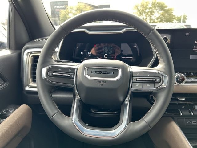 This 2026 GMC Canyon comes equipped with the following features Canyon Safety Plus Package (Blind Zone Steering Assist with Trailering, Rear Cross Traffic Braking, and Ultrasonic Rear Park Assist), Preferred Equipment Group 5SB (120-Volt Bed Mounted Power Outlet, 2 Rear USB Ports in Center Console (Charge-Only), 5 Rectangular Chrome Assist Steps, 6-Way Power Passenger Seat Adjuster, 8-Way Power Driver Seat Adjuster, Adaptive Cruise Control, Automatic Emergency Braking, Canyon Pro Safety, Driver and Front Passenger Illuminated Visors, Driver and Front Passenger Ventilated Seats, Driver Memory, Driver Seatback Map Pocket, Dual-Zone Automatic Climate Control Air Conditioning, EZ-Lift and Lower Tailgate, Following Distance Indicator, Forward Collision Alert, Front LED Fog Lamps, Front Pedestrian and Bicyclist Braking, HD Surround Vision, Heated Driver and Front Passenger Seats, Heated Steering Wheel, Inside Rear-View Auto-Dimming Mirror, IntelliBeam Automatic High Beam on/Off, Interior Overhead Courtesy Light with Dual Reading Lamp, Lane Keep Assist with Lane Departure Warning, Multicolor 6.3 Diagonal Head-Up Display, MultiStow Tailgate Storage Compartment, Power Driver Lumbar Control Seat Adjuster, Power Passenger Lumbar Control Seat Adjuster, Premium 7-Speaker Bose Sound System, Rear Center Fold-Down Armrest with 2 Cupholders, Rear of Console 120-Volt Power Outlet, Rear Pedestrian Alert, Remote Vehicle Starter System, Safety Alert Seat, Spray-on Bedliner with GMC Logo, Tailgate Keyed Cylinder Lock, Til and Telescopic Manual Steering Column, and Wireless Phone Charging), 4WD, 2 1st Row USB Charge/Data Ports, 3.42 Rear Axle Ratio, 4-Wheel Disc Brakes, 7 Speakers, ABS brakes, Air Conditioning, Alloy wheels, AM/FM radio: SiriusXM with 360L, Apple CarPlay/Android Auto, Auto High-beam Headlights, Auto-dimming Rear-View mirror, Automatic Stop/Start, Automatic temperature control, Brake assist, Bumpers: body-color, Compass, Delay-off headlights, Driver door bin, Driver Mode Selector, Driver vanity mirror, Dual front impact airbags, Dual front side impact airbags, Electronic Stability Control, Emergency communication system: OnStar, Front anti-roll bar, Front Bucket Seats, Front Center Armrest, Front dual zone A/C, Front fog lights, Front License Plate Kit, Front Passenger Seatback Map Pocket, Front reading lights, Front wheel independent suspension, Genuine wood dashboard insert, Genuine wood door panel insert, Heads-Up Display, Heated door mirrors, Heated front seats, Heated steering wheel, Illuminated entry, Low tire pressure warning, Memory seat, Navigation System, Occupant sensing airbag, Off-Road Suspension, Outside temperature display, Overhead airbag, Overhead console, Panic alarm, Passenger door bin, Passenger vanity mirror, Perforated Leather-Appointed Seat Trim, Power door mirrors, Power driver seat, Power Inner Sliding Glass Sunroof with Manual Shade, Power passenger seat, Power steering, Power windows, Radio data system, Radio: 11.3 Diagonal Premium GMC Infotainment System, Rear reading lights, Rear seat center armrest, Rear step bumper, Rear window defroster, Remote keyless entry, Security system, SiriusXM with 360L, Speed control, Speed-sensing steering, Split folding rear seat, Steering wheel mounted audio controls, Stop/Start System Disable Button Engine Control, Tachometer, Telescoping steering wheel, Tilt steering wheel, Traction control, Trip computer, Variably intermittent wipers, Ventilated front seats, Wheels: 20 x 9 Diamond Cut Dark Gray Aluminum, and Wireless Apple CarPlay/Wireless Android Auto. 4WD. 2026 GMC Canyon Onyx Black Denali 4WD 8-Speed Automatic 2.7L I4 Turbocharged DOHC 16V LEV3-SULEV30 310hp