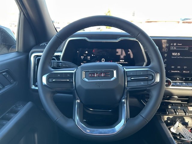 This 2026 GMC Canyon comes equipped with the following features Canyon Safety Plus Package (Blind Zone Steering Assist with Trailering, Rear Cross Traffic Braking, and Ultrasonic Rear Park Assist), 4WD, 1 Rear USB Port in Center Console (Charge-Only), 2 1st Row USB Charge/Data Ports, 3.42 Rear Axle Ratio, 4-Way Manual Front Passenger Seat Adjuster, 4-Wheel Disc Brakes, 6 Speakers, 6-Speaker Audio System Feature, 6-Way Manual Driver Seat Adjuster, ABS brakes, Air Conditioning, Alloy wheels, AM/FM radio: SiriusXM with 360L, Apple CarPlay/Android Auto, Auto High-beam Headlights, Automatic Emergency Braking, Automatic Stop/Start, Brake assist, Bumpers: body-color, Canyon Pro Safety, Cloth Seat Trim, Compass, Delay-off headlights, Driver door bin, Driver Mode Selector, Driver vanity mirror, Dual front impact airbags, Dual front side impact airbags, Electronic Stability Control, Emergency communication system: OnStar, Following Distance Indicator, Forward Collision Alert, Front anti-roll bar, Front Bucket Seats, Front Center Armrest, Front Passenger Seatback Map Pocket, Front Pedestrian and Bicyclist Braking, Front wheel independent suspension, Heated door mirrors, Illuminated entry, IntelliBeam Automatic High Beam on/Off, Lane Keep Assist with Lane Departure Warning, Low tire pressure warning, Navigation System, Occupant sensing airbag, Off-Road Suspension, Outside temperature display, Overhead airbag, Overhead console, Panic alarm, Passenger door bin, Passenger vanity mirror, Power door mirrors, Power steering, Power windows, Radio data system, Radio: 11.3 Diagonal Premium GMC Infotainment System, Rear reading lights, Rear step bumper, Rear window defroster, Remote keyless entry, Security system, SiriusXM with 360L, Speed control, Speed-sensing steering, Split folding rear seat, Steering wheel mounted audio controls, Stop/Start System Disable Button Engine Control, Tachometer, Tilt steering wheel, Traction control, Trip computer, Variably intermittent wipers, Wheels: 18 x 8.5 Gloss Black Finish Aluminum, and Wireless Apple CarPlay/Wireless Android Auto. 4WD. 2026 GMC Canyon Sterling Elevation 4WD 8-Speed Automatic 2.7L I4 Turbocharged DOHC 16V LEV3-SULEV30 310hp