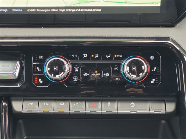 10-Speed Automatic, 4WD, Jet Black w/Kalahari Accents w/Perforated Front Leather Seat Trim, 120-Volt Bed Mounted Power Outlet, 120-Volt Interior Power Outlet, 2 Charge/Data USB Ports Inside Center Console, 2 Type-C Charge-Only Rear USB Ports, 2 USB Ports, 220 Amp Alternator, Alloy wheels, AT4 Preferred Package, AT4 Premium Package, Auto-Locking Rear Differential, Bed View Camera, Black Badging Package (LPO), Black Chrome Grille Insert Bars, Black GMC Emblems (LPO), Black Sierra Nameplates (LPO), Color-Keyed Carpeting Floor Covering, Deep-Tinted Glass, Electric Rear-Window Defogger, Floor-Mounted Center Console, Front Prem Floor Liners w/Removable Carpet Insert, Front Rain-Sensing Wipers, HD Surround Vision, Heated 2nd Row Outboard Seats, Heated Driver & Front Outboard Passenger Seating, Heavy-Duty Air Filter, Hill Descent Control, Hitch Guidance, Hitch View, In-Vehicle Trailering System App, Integrated Trailer Brake Controller, Keyless Open & Start, LED Cargo Area Lighting, Multicolor 15 Diagonal Head-Up Display, Navigation System, Off-Road High Clearance Step (LPO), OnStar Services Capable, Perimeter Lighting, Power Door Locks, Power Front Passenger Windows w/Express Up/Down, Power Front Windows w/Driver Express Up/Down, Power Rake & Telescoping Steering Column, Power Rear Windows w/Express Down, Power Sliding Rear Window w/Rear Defogger, Preferred Equipment Group 4SB, Premium Bose 7-Speaker Sound System, Push Button Start, Rear Camera Mirror, Rear Cross Traffic Braking, Rear Pedestrian Detection, Rear Prem Floor Liners w/Removable Carpet Insert, Rear Wheelhouse Liners, Red Recovery Hooks, Remote Vehicle Starter System, SiriusXM w/360L Trial Subscription, Spray-On Pickup Bedliner w/GMC Logo, Steering Wheel Audio Controls, Technology Package, Theft Deterrent System (Unauthorized Entry), Trailer Camera Provisions, Trailer Side Blind Zone Alert, Trailering Package, Ultrasonic Front & Rear Park Assist, Universal Home Remote, Ventilated Driver & Front Passenger Seats, Wheels: 20 x 9 Machined Aluminum, Wi-Fi Hotspot Capable, Wireless Charging.