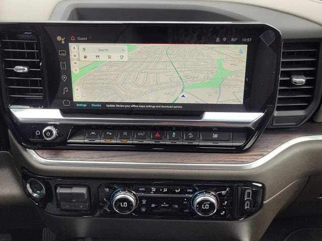 10-Speed Automatic, 4WD, Dark Walnut/Slate w/Perf Leather-Appointed Front Outboard Seat Trim, 120-Volt Bed Mounted Power Outlet, 120-Volt Interior Power Outlet, 170 Amp Alternator, 2 Charge/Data USB Ports, 2 Charge/Data USB Ports Inside Center Console, 2 Type-C Charge-Only Rear USB Ports, 20 Polished Aluminum Wheels, 6-Speaker Audio System Feature, Alloy wheels, Auto-Locking Rear Differential, Auxiliary External Transmission Oil Cooler, Color-Keyed Carpeting Floor Covering, Deep-Tinted Glass, Electric Rear-Window Defogger, Electronic Precision Shift, Floor-Mounted Center Console, Front Bucket Seats, Front Frame-Mounted Black Recovery Hooks, Front Rain-Sensing Wipers, HD Rear Vision Camera, High Capacity Suspension Package, Hitch Guidance, Integrated Trailer Brake Controller, LED Cargo Area Lighting, Navigation System, OnStar Services Capable, Perimeter Lighting, Power Door Locks, Preferred Equipment Group 4SA, Premium Bose 7-Speaker Sound System, Push Button Start, Rear Wheelhouse Liners, Remote Vehicle Starter System, SLT Convenience Package, Standard Suspension Package, Steering Wheel Audio Controls, Texas Edition Badging, Texas Edition SLT Premium Package, Trailering Package, Wi-Fi Hotspot Capable, Wireless Charging.