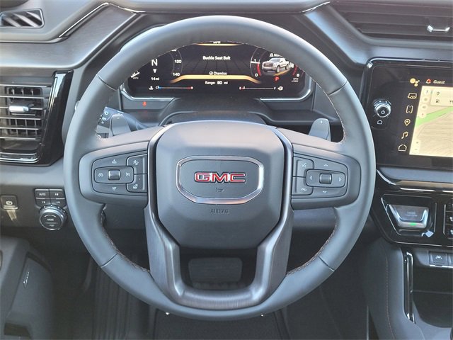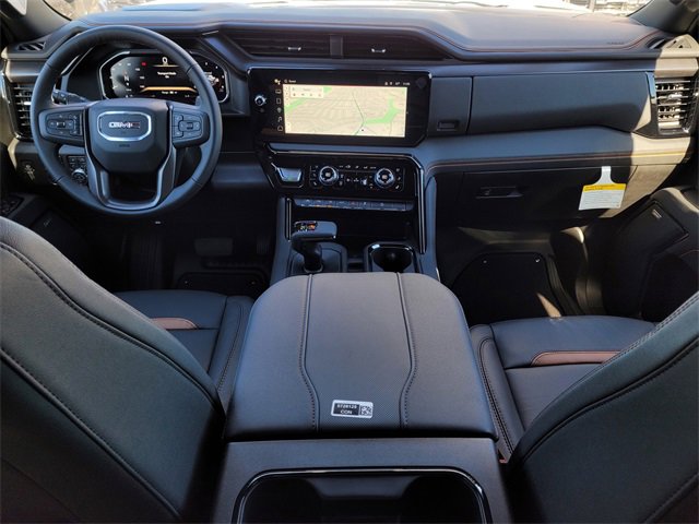 10-Speed Automatic, 4WD, Jet Black w/Kalahari Accents w/Perforated Front Leather Seat Trim, 120-Volt Bed Mounted Power Outlet, 120-Volt Interior Power Outlet, 2 Charge/Data USB Ports Inside Center Console, 2 Type-C Charge-Only Rear USB Ports, 2 USB Ports, 220 Amp Alternator, Alloy wheels, AT4 Preferred Package, AT4 Premium Package, Auto-Locking Rear Differential, Bed View Camera, Black Badging Package (LPO), Black Chrome Grille Insert Bars, Black GMC Emblems (LPO), Black Sierra Nameplates (LPO), Color-Keyed Carpeting Floor Covering, Deep-Tinted Glass, Electric Rear-Window Defogger, Floor-Mounted Center Console, Front Prem Floor Liners w/Removable Carpet Insert, Front Rain-Sensing Wipers, HD Surround Vision, Heated 2nd Row Outboard Seats, Heated Driver & Front Outboard Passenger Seating, Heavy-Duty Air Filter, Hill Descent Control, Hitch Guidance, Hitch View, In-Vehicle Trailering System App, Integrated Trailer Brake Controller, Keyless Open & Start, LED Cargo Area Lighting, Multicolor 15 Diagonal Head-Up Display, Navigation System, Off-Road High Clearance Step (LPO), OnStar Services Capable, Perimeter Lighting, Power Door Locks, Power Front Passenger Windows w/Express Up/Down, Power Front Windows w/Driver Express Up/Down, Power Rake & Telescoping Steering Column, Power Rear Windows w/Express Down, Power Sliding Rear Window w/Rear Defogger, Preferred Equipment Group 4SB, Premium Bose 7-Speaker Sound System, Push Button Start, Rear Camera Mirror, Rear Cross Traffic Braking, Rear Pedestrian Detection, Rear Prem Floor Liners w/Removable Carpet Insert, Rear Wheelhouse Liners, Red Recovery Hooks, Remote Vehicle Starter System, SiriusXM w/360L Trial Subscription, Spray-On Pickup Bedliner w/GMC Logo, Steering Wheel Audio Controls, Technology Package, Theft Deterrent System (Unauthorized Entry), Trailer Camera Provisions, Trailer Side Blind Zone Alert, Trailering Package, Ultrasonic Front & Rear Park Assist, Universal Home Remote, Ventilated Driver & Front Passenger Seats, Wheels: 20 x 9 Machined Aluminum, Wi-Fi Hotspot Capable, Wireless Charging.