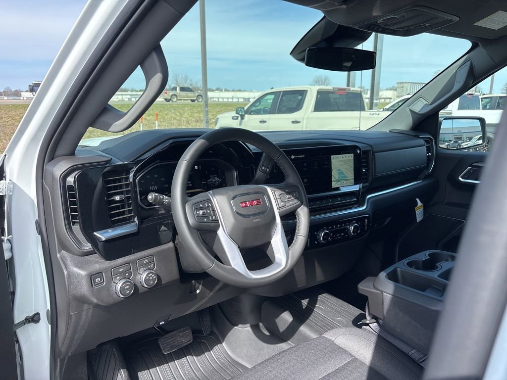 Pricing excludes tax, tag, license fees, dealers $129 doc fee, $1,995 in dealer addendum. See dealer for exact pricing. Some discounts require dealership to arrange financing, price not available with 0% or incentivized rates. See dealer for details. This 2026 GMC Sierra 1500 comes equipped with these features High Capacity Suspension Package, Trailering Package (Hitch Guidance), 8-Speed Automatic, 4WD, Black Cloth, 10-Way Power Driver Seat Adjuster with Lumbar, 120-Volt Bed Mounted Power Outlet, 120-Volt Interior Power Outlet, 2 Charge/Data USB Ports, 2 Type-C Charge-Only Rear USB Ports, 220 Amp Alternator, 3.42 Rear Axle Ratio, 4-Way Manual Passenger Seat Adjuster, 4-Wheel Disc Brakes, 6 Speakers, 6-Speaker Audio System Feature, ABS brakes, Air Conditioning, Alloy wheels, AM/FM radio: SiriusXM with 360L, Apple CarPlay/Android Auto, Auto High-beam Headlights, Auto-Locking Rear Differential, Automatic Emergency Braking, Automatic temperature control, Body Color Header with Gloss Black Mesh Grille Bars, Brake assist, Buckle to Drive, Bumpers: body-color, Cloth Seat Trim, Color-Keyed Carpeting Floor Covering, Compass, Deep-Tinted Glass, Delay-off headlights, Driver door bin, Driver vanity mirror, Dual front impact airbags, Dual front side impact airbags, Electric Rear-Window Defogger, Electronic Stability Control, Emergency communication system: OnStar, Following Distance Indicator, Forward Collision Alert, Front 40/20/40 Split-Bench Seat, Front anti-roll bar, Front Center Armrest w/Storage, Front dual zone A/C, Front fog lights, Front Frame-Mounted Black Recovery Hooks, Front Pedestrian Braking, Front reading lights, Front Rubberized-Vinyl Floor Mats, Front wheel independent suspension, Fully automatic headlights, HD Rear Vision Camera, Heated door mirrors, Heated Driver and Front Outboard Passenger Seating, Heated front seats, Heated steering wheel, Illuminated entry, Integrated Trailer Brake Controller, IntelliBeam Automatic High Beam on/Off, Keyless Open and Start, Lane Keep Assist with Lane Departure Warning, LED Cargo Area Lighting, Low tire pressure warning, Manual Tilt-Wheel and Telescoping Steering Column, Navigation System, Occupant sensing airbag, OnStar Services Capable, Outside temperature display, Overhead airbag, Overhead console, Panic alarm, Passenger door bin, Passenger vanity mirror, Power Door Locks, Power door mirrors, Power driver seat, Power Front Windows with Driver Express Up/Down, Power Front Windows with Passenger Express Down, Power Rear Windows with Express Down, Power steering, Power windows, Push Button Start, Radio data system, Radio: Premium GMC Infotainment Audio System, Rear reading lights, Rear Rubberized-Vinyl Floor Mats, Rear step bumper, Rear window defroster, Remote keyless entry, Remote Vehicle Starter System, Security system, SiriusXM with 360L Trial Subscription, Speed control, Speed-sensing steering, Split folding rear seat, Steering Wheel Audio Controls, Steering wheel mounted audio controls, Tachometer, Telescoping steering wheel, Theft Deterrent System (unauthorized Entry), Tilt steering wheel, Traction control, Trip computer, Variably intermittent wipers, Voltmeter, Wheels: : 20 x 9 High Gloss Black Painted Aluminum, Wi-Fi Hotspot Capable, and Wireless Apple CarPlay/Wireless Android Auto.