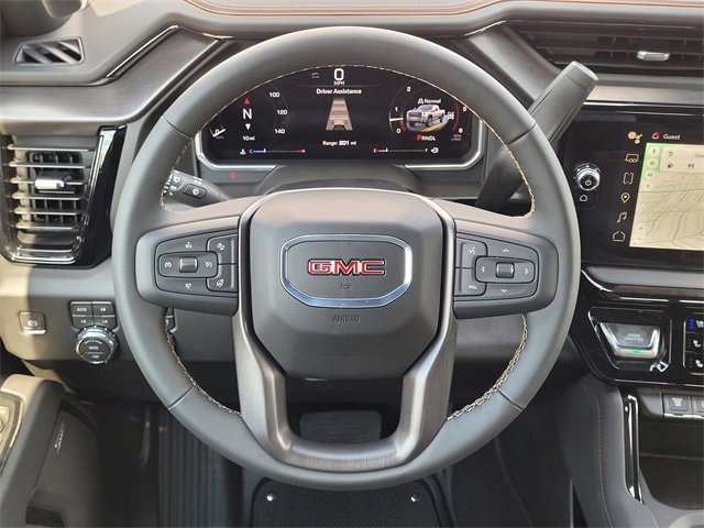 10-Speed Automatic, 4WD, Jet Black w/Kalahari Accents w/Perforated Leather-Appointed Front Seat Trim, 120-Volt Bed Mounted Power Outlet, 120-Volt Instrument Panel Power Outlet, 2 Charge-Only Rear USB Ports, 2 Charge/Data USB Ports Inside Center Console, 2 USB Ports, 2-Speed Active Transfer Case, Alloy wheels, AT4 Preferred Package, AT4 Premium Package, Bed View Camera w/2 Trailer Camera Provisions, Bose Premium 7-Speaker Sound System, Deep-Tinted Glass, Electric Rear-Window Defogger, Floor-Mounted Center Console, Front Prem Floor Liners w/Removable Carpet Insert, Front Rain-Sensing Wipers, Gloss Black Header Grille & Grille Insert Bars, Gooseneck/5th Wheel Prep Package, HD Surround Vision, Heated 2nd Row Outboard Seats, Heated Driver & Front Outboard Passenger Seats, Hill Descent Control, Hitch Package (LPO), Inside Rearview Auto-Dimming Rear Camera Mirror, Keyless Open & Start, LED Cargo Area Lighting, LED Smoked Amber Roof Marker Lamps, Manual Tilt-Wheel/Telescoping Steering Column, Max Trailering Package, Multicolor 15 Diagonal Head-Up Display, Off-Road High Clearance Step (LPO), OnStar Services Capable, Power Front Passenger Windows w/Express Up/Down, Power Sliding Rear Window w/Defogger, Power Sunroof, Preferred Equipment Group 4SB, Push Button Start, Rear Cross Traffic Alert, Rear Prem Floor Liners w/Removable Carpet Insert, Rear Wheelhouse Liners, Remote Vehicle Starter System, Safety Alert Seat, SiriusXM w/360L Trial Subscription, Spray-On Pickup Bedliner w/GMC Logo, Steering Wheel Audio Controls, Technology Package, Trailer Cam Provisions & Trailer Viewing Software, Trailer Side Blind Zone Alert, Ultrasonic Front & Rear Park Assist, Unauthorized Entry Theft-Deterrent System, Universal Home Remote, Ventilated Driver & Front Passenger Seats, Wheels: 20 High Gloss Black 8 Spokes Aluminum, Wireless Charging, Wireless Phone Projection, X31 Off-Road Package.