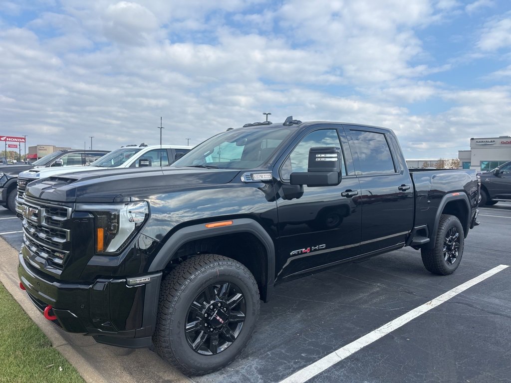 Pricing excludes tax, tag, license fees, dealers $129 doc fee, $1,995 in dealer addendum. See dealer for exact pricing. Some discounts require dealership to arrange financing, price not available with 0% or incentivized rates. See dealer for details. This 2026 GMC Sierra 2500HD comes equipped with these features AT4 Preferred Package (LED Smoked Amber Roof Marker Lamps, Power Sliding Rear Window w/Defogger, and Universal Home Remote), Gooseneck/5th Wheel Prep Package, Preferred Equipment Group 4SB (120-Volt Bed Mounted Power Outlet, 120-Volt Instrument Panel Power Outlet, 2 Charge-Only Rear USB Ports, 2 Charge/Data USB Ports Inside Center Console, 2 USB Ports, 2-Speed Active Transfer Case, Bed View Camera w/2 Trailer Camera Provisions, Bose Premium 7-Speaker Sound System, Deep-Tinted Glass, Electric Rear-Window Defogger, Floor-Mounted Center Console, Front Prem Floor Liners w/Removable Carpet Insert, Front Rain-Sensing Wipers, Gloss Black Header Grille & Grille Insert Bars, HD Surround Vision, Heated 2nd Row Outboard Seats, Heated Driver & Front Outboard Passenger Seats, Keyless Open & Start, LED Cargo Area Lighting, Manual Tilt-Wheel/Telescoping Steering Column, OnStar Services Capable, Power Front Passenger Windows w/Express Up/Down, Push Button Start, Rear Cross Traffic Alert, Rear Prem Floor Liners w/Removable Carpet Insert, Rear Wheelhouse Liners, Remote Vehicle Starter System, Safety Alert Seat, SiriusXM w/360L Trial Subscription, Spray-On Pickup Bedliner w/GMC Logo, Steering Wheel Audio Controls, Trailer Cam Provisions & Trailer Viewing Software, Trailer Side Blind Zone Alert, Ultrasonic Front & Rear Park Assist, Unauthorized Entry Theft-Deterrent System, Ventilated Driver & Front Passenger Seats, Wireless Charging, and Wireless Phone Projection), X31 Off-Road Package (Hill Descent Control), 10-Speed Automatic, 4WD, Jet Black With Kalahari Accents Leather, 10-Way Power Driver Seat Adjuster w/Lumbar, 10-Way Power Passenger Seat Adjuster w/Lumbar, 3.73 Rear Axle Ratio, 4-Wheel Disc Brakes, 7 Speakers, ABS brakes, Air Conditioning, Alloy wheels, AM/FM radio: SiriusXM with 360L, Apple CarPlay/Android Auto, Auto High-beam Headlights, Auto-dimming door mirrors, Auto-dimming Rear-View mirror, Automatic Emergency Braking, Automatic temperature control, Brake assist, Buckle to Drive, Bumpers: body-color, Compass, Delay-off headlights, Driver door bin, Driver Memory, Driver vanity mirror, Dual front impact airbags, Dual front side impact airbags, Electronic Stability Control, Emergency communication system: OnStar, Following Distance Indicator, Forward Collision Alert, Front anti-roll bar, Front Bucket Seats, Front Center Armrest, Front dual zone A/C, Front fog lights, Front Pedestrian Braking, Front reading lights, Front wheel independent suspension, Fully automatic headlights, Heated door mirrors, Heated front seats, Heated rear seats, Heated steering wheel, Heavy-Duty 80 Amp Battery, Hitch Guidance w/Hitch View, Illuminated entry, In-Vehicle Trailering System App, IntelliBeam Automatic High Beam On/Off, Lane Departure Warning System, Low tire pressure warning, Memory seat, Occupant sensing airbag, Off-Road Suspension, Outside temperature display, Overhead airbag, Overhead console, Panic alarm, Passenger door bin, Passenger vanity mirror, Perforated Leather-Appointed Front Seat Trim, Pickup Box, Power door mirrors, Power driver seat, Power passenger seat, Power steering, Power windows, Premium audio system: Premium GMC Infotainment System, Radio: AM/FM w/Premium GMC Infotainment System, Rain sensing wipers, Rear reading lights, Rear seat center armrest, Rear step bumper, Rear window defroster, Remote keyless entry, Security system, Speed control, Speed-sensing steering, Split folding rear seat, Steering wheel mounted audio controls, Tachometer, Telescoping steering wheel, Tilt steering wheel, Traction control, Trip computer, Turn signal indicator mirrors, Variably intermittent w