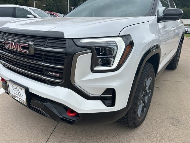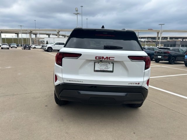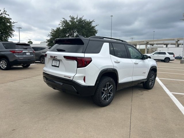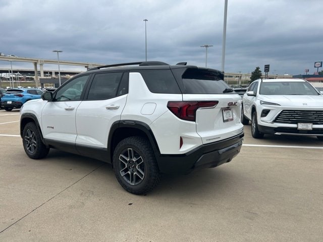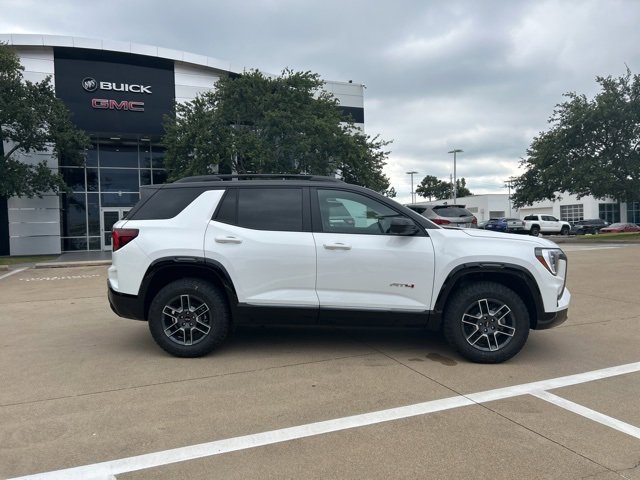 This 2026 GMC Terrain comes equipped with the following features License Plate Front Mounting Package, Preferred Equipment Group 4SB, Technology Package II (HD Surround Vision, Rear Camera Mirror, Rear Camera Mirror Washer, Rear Pedestrian Alert, and Traffic Sign Recognition), AWD, 2-Way Power Driver Lumbar Seat Adjuster, 3.47 Final Drive Axle Ratio, 4-Wheel Disc Brakes, 6 Speakers, 6-Speaker Audio System Feature, 8-Way Power Driver Seat Adjuster, ABS brakes, Air Conditioning, Alloy wheels, AM/FM radio: SiriusXM, Auto High-beam Headlights, Automatic temperature control, Brake assist, Bumpers: body-color, Cloth/Core Tec Seat Trim, Compass, Delay-off headlights, Driver & Front Passenger Heated Seats, Driver door bin, Driver vanity mirror, Dual front impact airbags, Dual front side impact airbags, Ebony Twilight Metallic Roof, Ebony Twilight Mirror Caps, Electronic Stability Control, Emergency communication system: OnStar and GMC connected services capable, Four wheel independent suspension, Front anti-roll bar, Front Bucket Seats, Front Center Armrest, Front dual zone A/C, Front fog lights, Front Passenger 4-Way Manual Seat Adjuster, Front reading lights, Fully automatic headlights, Garage door transmitter, Heated door mirrors, Heated front seats, Heated steering wheel, Illuminated entry, Low tire pressure warning, Navigation System, Occupant sensing airbag, Outside temperature display, Overhead airbag, Overhead console, Panic alarm, Panoramic Power Sunroof w/Sunshade, Passenger door bin, Passenger vanity mirror, Power door mirrors, Power driver seat, Power Liftgate, Power steering, Power windows, Radio data system, Radio: Premium GMC Infotainment System, Rain sensing wipers, Rear air conditioning, Rear anti-roll bar, Rear seat center armrest, Rear window defroster, Rear window wiper, Remote keyless entry, Security system, SiriusXM w/360L Trial Subscription, Speed control, Speed-sensing steering, Split folding rear seat, Spoiler, Sport steering wheel, Steering wheel mounted audio controls, Tachometer, Telescoping steering wheel, Tilt steering wheel, Traction control, Trip computer, Variably intermittent wipers, Wheels: 17 Dark Machined Aluminum, and Wireless Apple CarPlay/Wireless Android Auto. AWD. 2026 GMC Terrain Summit White AT4 AWD 8-Speed Automatic with Overdrive 1.5L DOHC