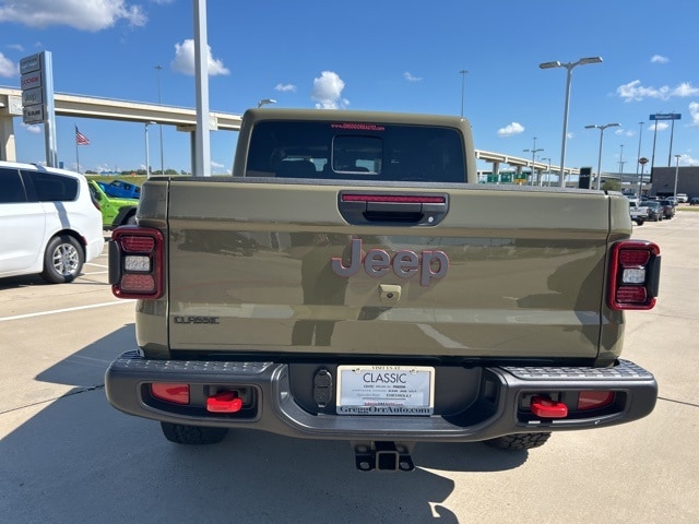 Classic CDJR in Texarkana is proud to offer this beautiful-looking 2025 Jeep Gladiator in 41. This 2025 Jeep Gladiator comes with the following features; Convenience Group (Heated Front Seats, Heated Steering Wheel, Remote Start System, SiriusXM Radio Service, SiriusXM w/360L, and Universal Garage Door Opener), Quick Order Package 24R Rubicon, 12.3" Touchscreen Display, 4-Wheel Disc Brakes, 4.10 Rear Axle Ratio, 4G LTE Wi-Fi Hot Spot, 8 Speakers, 97 MPH Vehicle Max Speed Calibration, ABS brakes, Air Conditioning, Alexa Built-In, Alloy wheels, AM/FM radio: SiriusXM, Apple CarPlay, Apple CarPlay/Android Auto, Automatic temperature control, Body Color 3-Piece Hard Top, Body Color Rubicon Highline Flare, Brake assist, Cloth Low-Back Bucket Seats, Compass, Connectivity - US/Canada, Delay-off headlights, Driver door bin, Driver vanity mirror, Dual front impact airbags, Dual front side impact airbags, Electronic Stability Control, Emergency communication system: Jeep Connect, Freedom Panel Storage Bag, Front anti-roll bar, Front Bucket Seats, Front Center Armrest w/Storage, Front dual zone A/C, Front fog lights, Front License Plate Bracket, Front reading lights, Fully automatic headlights, Google Android Auto, Heated door mirrors, Illuminated entry, Integrated roll-over protection, Low tire pressure warning, MOPAR All-Weather Slush Mats, MOPAR Spray In Bedliner, Occupant sensing airbag, Outside temperature display, Overhead airbag, Panic alarm, Passenger door bin, Passenger vanity mirror, Performance Suspension, Power door mirrors, Power steering, Power windows, Radio data system, Radio: Uconnect 5 w/12.3" Display, Rear anti-roll bar, Rear reading lights, Rear Sliding Window, Rear Window Defroster, Remote keyless entry, Security system, Speed control, Split folding rear seat, Steering wheel mounted audio controls, Tachometer, Telescoping steering wheel, Tilt steering wheel, Traction control, Trip computer, USB Host Flip, Variably intermittent wipers, Voltmeter, and Wheels: 17" x 7.5" Machined/Painted Black.
