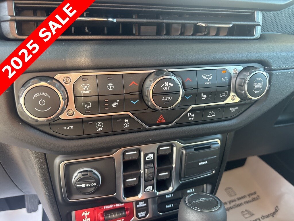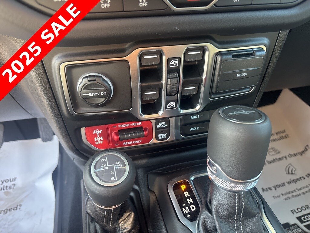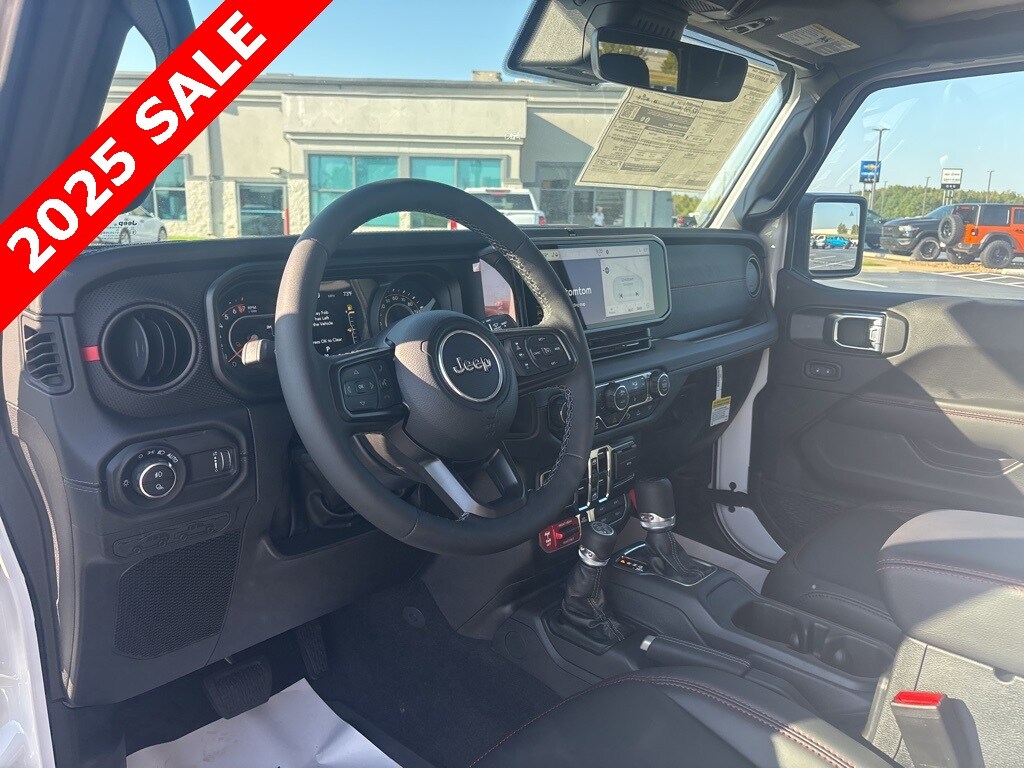 Pricing excludes tax, tag, license fees, dealers $129 doc fee, $1,995 in dealer addendum. See dealer for exact pricing. Some discounts require dealership to arrange financing, price not available with 0% or incentivized rates. See dealer for details. This 2025 Jeep Gladiator comes equipped with these features Quick Order Package 24Y Rubicon X (4G LTE Wi-Fi Hot Spot, Alexa Built-In, Alpine Premium Audio System, Apple CarPlay, Auto High Beam Headlamp Control, Auto-Dimming Rear-View Mirror, Blind Spot & Cross Path Detection, Bluetooth Wireless Speaker, Body Color 3-Piece Hard Top, Body Color Rubicon Highline Flare, Connected Travel & Traffic Services, Connectivity - US/Canada, Freedom Panel Storage Bag, Full Length Floor Console Premium Armrest, Google Android Auto, GPS Navigation, Heated Front Seats, Heated Steering Wheel, Integrated Off-Road Camera, Integrated Voice Command w/Bluetooth, Leather Wrapped Park Brake Handle, Leather Wrapped Shift Knob, MOPAR Hardtop Headliner, ParkSense Rear Park Assist System, Power 4-Way Driver Lumbar Adjust, Power 4-Way Passenger Lumbar Adjust, Power Adjust 8-Way Driver Seat, Power Adjust 8-Way Front Passenger Seat, Power Adjust Nappa Leather Seats, Premium Door Trim Panel, Radio: Uconnect 5 Nav w/12.3" Display, Rear Armrest w/Cupholder Seat, Rear Sliding Window, Rear Window Defroster, SiriusXM Radio Service, SiriusXM w/360L, Steel Front Bumper, Universal Garage Door Opener, and USB Host Flip), 12.3" Touchscreen Display, 4-Wheel Disc Brakes, 4.10 Rear Axle Ratio, 8 Speakers, 97 MPH Vehicle Max Speed Calibration, ABS brakes, Air Conditioning, Alloy wheels, AM/FM radio: SiriusXM, Apple CarPlay/Android Auto, Automatic temperature control, Brake assist, Cloth Low-Back Bucket Seats, Compass, Delay-off headlights, Driver door bin, Driver vanity mirror, Dual front impact airbags, Dual front side impact airbags, Electronic Stability Control, Emergency communication system: Jeep Connect, Front anti-roll bar, Front Bucket Seats, Front Center Armrest w/Storage, Front dual zone A/C, Front fog lights, Front reading lights, Fully automatic headlights, Heated door mirrors, Illuminated entry, Integrated roll-over protection, Low tire pressure warning, MOPAR All-Weather Slush Mats, MOPAR Spray In Bedliner, Occupant sensing airbag, Outside temperature display, Overhead airbag, Panic alarm, Passenger door bin, Passenger vanity mirror, Performance Suspension, Power door mirrors, Power steering, Power windows, Radio data system, Radio: Uconnect 5 w/12.3" Display, Rear anti-roll bar, Rear reading lights, Remote keyless entry, Security system, Speed control, Split folding rear seat, Steering wheel mounted audio controls, Tachometer, Telescoping steering wheel, Tilt steering wheel, Traction control, Trip computer, Variably intermittent wipers, Voltmeter, and Wheels: 17" x 7.5" Machined/Painted Black.