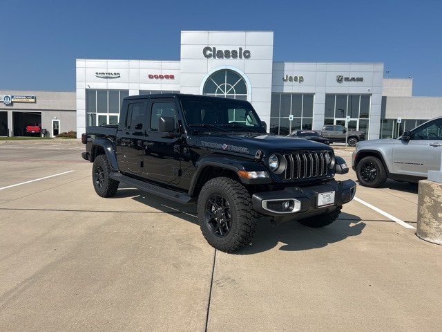 Classic CDJR in Texarkana is proud to offer this gorgeous 2025 Jeep Gladiator in Black Clearcoat. This 2025 Jeep Gladiator comes with the following features; Convenience Group (Corning Gorilla Glass, Daytime Running Lamp System, Emergency/Assistance Call, Front Door Locks 2-Door Passive Entry, Heated Front Seats, Heated Steering Wheel, Remote Start System, and Universal Garage Door Opener), Quick Order Package 24J Texas Trail (97 MPH Vehicle Max Speed Calibration, Advanced Brake Assist, Automatic Headlamps, Body Color 3-Piece Hard Top, Body Color Fender Flares (2-Piece), Deep Tint Sunscreen Windows, Freedom Panel Storage Bag, Full Length Floor Console Premium Armrest, Full Speed Forward Collision Warning Plus, Hard Seat Back, Integrated Radar Camera Module (IRCM), Leather Wrapped Park Brake Handle, Leather Wrapped Shift Knob, Power 4-Way Driver Lumbar Adjust, Power 4-Way Passenger Lumbar Adjust, Power Adjust 8-Way Driver Seat, Power Adjust 8-Way Front Passenger Seat, Power Heated Mirrors, Premium Door Trim Panel, Premium McKinley Trimmed Seats, Premium Wrapped Steering Wheel, Rear Armrest w/Cupholder Seat, Rear Sliding Window, Rear Window Defroster, Security Alarm, Sun Visors w/Illuminated Vanity Mirrors, Texas Trail, Texas Trail Tailgate & Hood Decals, Wheels: 17" x 7.5" Painted Black, and Willys Suspension), 110 MPH Vehicle Max Speed Calibration, 12.3" Touchscreen Display, 3.73 Rear Axle Ratio, 4-Wheel Disc Brakes, 4G LTE Wi-Fi Hot Spot, 8 Speakers, ABS brakes, Air Conditioning, Alexa Built-In, AM/FM radio: SiriusXM, Apple CarPlay, Apple CarPlay/Android Auto, Brake assist, Cloth Low-Back Bucket Seats, Compass, Connectivity - US/Canada, Delay-off headlights, Driver door bin, Driver vanity mirror, Dual front impact airbags, Dual front side impact airbags, Electronic Stability Control, Front anti-roll bar, Front Bucket Seats, Front Center Armrest w/Storage, Front fog lights, Front License Plate Bracket, Front reading lights, Google Android Auto, Illuminated entry, Integrated roll-over protection, Low tire pressure warning, MOPAR All-Weather Slush Mats, MOPAR Spray In Bedliner, Normal Duty Suspension, Occupant sensing airbag, Outside temperature display, Overhead airbag, Panic alarm, ParkView Rear Back-Up Camera, Passenger door bin, Passenger vanity mirror, Power steering, Power windows, Radio data system, Radio: Uconnect 5 w/12.3" Display, Rear anti-roll bar, Rear reading lights, Remote keyless entry, Side Steps, Speed control, Split folding rear seat, Steering wheel mounted audio controls, Tachometer, Telescoping steering wheel, Tilt steering wheel, Traction control, Trip computer, USB Host Flip, Variably intermittent wipers, Voltmeter, and Wheels: 17" x 7.5" Black Steel Styled.