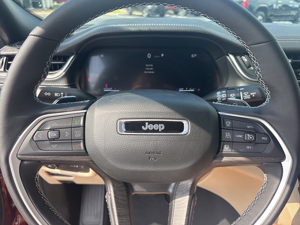 Pricing excludes tax, tag, license fees, dealers $129 doc fee, $1,995 in dealer addendum. See dealer for exact pricing. Some discounts require dealership to arrange financing, price not available with 0% or incentivized rates. See dealer for details. This 2025 Jeep Grand Cherokee comes equipped with these features Quick Order Package 22E, Trailer Tow Package (220 Amp Alternator, 7 & 4-Pin Wiring Harness, Automatic Headlamp Levelling System, Class IV Receiver Hitch, Heavy-Duty Engine Cooling, Rear Load Levelling Suspension, and Trailer Hitch Zoom), 4WD, 4-Wheel Disc Brakes, 6 Speakers, ABS brakes, Active Noise Control System, Air Conditioning, Alloy wheels, AM/FM radio: SiriusXM with 360L, Anti-whiplash front head restraints, Audio memory, Auto High-beam Headlights, Automatic temperature control, Brake assist, Bumpers: body-color, Capri Leatherette Seats, Compass, Delay-off headlights, Driver door bin, Driver vanity mirror, Dual front impact airbags, Dual front side impact airbags, Electronic Stability Control, Emergency communication system, Four wheel independent suspension, Front anti-roll bar, Front Bucket Seats, Front Center Armrest w/Storage, Front dual zone A/C, Front fog lights, Front reading lights, Fully automatic headlights, Garage door transmitter, Heated door mirrors, Heated front seats, Heated rear seats, Heated steering wheel, Illuminated entry, Knee airbag, Low tire pressure warning, Memory seat, Model Year Tracking, Navigation System, Normal Duty Suspension, Occupant sensing airbag, Outside temperature display, Overhead airbag, Overhead console, Panic alarm, ParkView Rear Back-Up Camera, Passenger door bin, Passenger vanity mirror, Power door mirrors, Power driver seat, Power Liftgate, Power passenger seat, Power steering, Power windows, Radio data system, Radio: Uconnect 5 Nav w/10.1" Display, Rear anti-roll bar, Rear reading lights, Rear window defroster, Rear window wiper, Remote keyless entry, Security system, Speed control, Speed-Sensitive Wipers, Split folding rear seat, Spoiler, Steering wheel mounted audio controls, Tachometer, Telescoping steering wheel, Tilt steering wheel, Traction control, Trip computer, Turn signal indicator mirrors, Variably intermittent wipers, Voltmeter, and Wheels: 18" x 8" Polished/Painted Aluminum.
