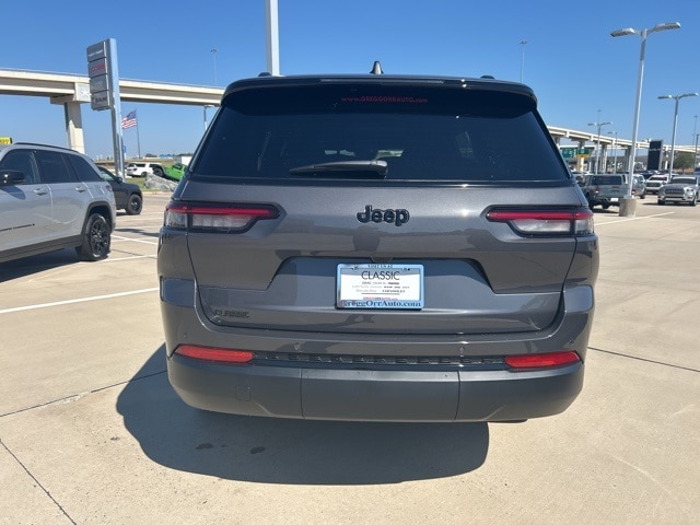 Classic CDJR in Texarkana is proud to offer this terrific-looking 2025 Jeep Grand Cherokee L in Baltic Gray Metallic Clearcoat. This 2025 Jeep Grand Cherokee L comes with the following features; Quick Order Package 23M Altitude X (115V Auxiliary Power Outlet, 3rd Row Charge-Only USB Ports, Altitude X, Black Headliner, Capri Leatherette/Suede Seats, Delete Laredo Badge, Gloss Black Exterior Accents, Heated Front Seats, Heated Steering Wheel, Power Liftgate, Power Sunroof, Rain Sensitive Windshield Wipers, Remote Start System, Selectable Tire Fill Alert, Wheels: 18" x 8.0" Fully Painted Aluminum 1, and Wireless Charging Pad), Trailer Tow Package (180 Amp Alternator, 7 & 4 Pin Wiring Harness, Automatic Headlamp Leveling System, Class IV Receiver Hitch, Dual Exhaust Tips, Heavy-Duty Engine Cooling, Rear Load Leveling Suspension, and Trailer Hitch Zoom), 3.45 Rear Axle Ratio, 3rd row seats: split-bench, 4-Wheel Disc Brakes, 6 Speakers, ABS brakes, Air Conditioning, Alloy wheels, AM/FM radio: SiriusXM, Anti-whiplash front head restraints, Automatic temperature control, Brake assist, Bumpers: body-color, Cloth Seats, Compass, Delay-off headlights, Driver door bin, Driver vanity mirror, Dual front impact airbags, Dual front side impact airbags, Electronic Stability Control, Emergency communication system, Four wheel independent suspension, Front anti-roll bar, Front Bucket Seats, Front Center Armrest w/Storage, Front dual zone A/C, Front License Plate Bracket, Front reading lights, Fully automatic headlights, Heated door mirrors, Illuminated entry, Knee airbag, Low tire pressure warning, Manual Fold Seatbacks, Model Year Tracking, Normal Duty Suspension, Occupant sensing airbag, Outside temperature display, Overhead airbag, Overhead console, Panic alarm, ParkView Rear Back-Up Camera, Passenger door bin, Passenger vanity mirror, Power door mirrors, Power driver seat, Power steering, Power windows, Radio data system, Radio: Uconnect 5 w/8.4" Display, Rear air conditioning, Rear anti-roll bar, Rear reading lights, Rear window defroster, Rear window wiper, Reclining 3rd row seat, Remote keyless entry, Security system, Speed control, Speed-Sensitive Wipers, Split folding rear seat, Spoiler, Steering wheel mounted audio controls, Tachometer, Telescoping steering wheel, Tilt steering wheel, Traction control, Trip computer, Variably intermittent wipers, Voltmeter, and Wheels: 18" x 8.0" Fully Painted Aluminum.