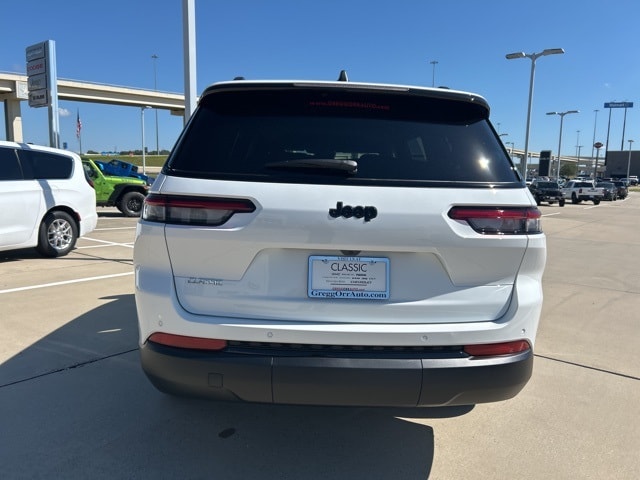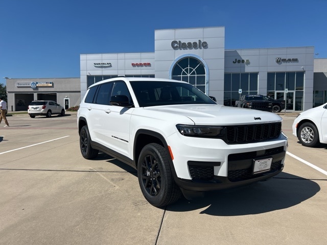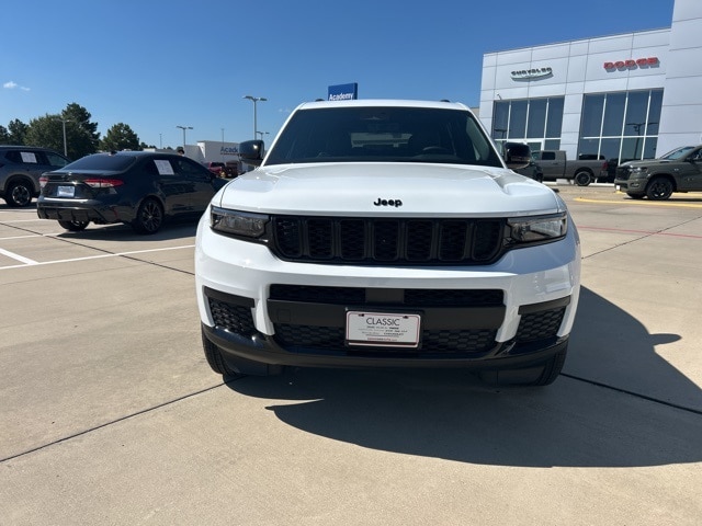 Classic CDJR in Texarkana is proud to offer this good-looking 2025 Jeep Grand Cherokee L in Bright White Clearcoat. This 2025 Jeep Grand Cherokee L comes with the following features; Quick Order Package 23M Altitude X (115V Auxiliary Power Outlet, 3rd Row Charge-Only USB Ports, Altitude X, Black Headliner, Capri Leatherette/Suede Seats, Delete Laredo Badge, Gloss Black Exterior Accents, Heated Front Seats, Heated Steering Wheel, Power Liftgate, Power Sunroof, Rain Sensitive Windshield Wipers, Remote Start System, Selectable Tire Fill Alert, Wheels: 18" x 8.0" Fully Painted Aluminum 1, and Wireless Charging Pad), Trailer Tow Package (180 Amp Alternator, 7 & 4 Pin Wiring Harness, Automatic Headlamp Leveling System, Class IV Receiver Hitch, Dual Exhaust Tips, Heavy-Duty Engine Cooling, Rear Load Leveling Suspension, and Trailer Hitch Zoom), 3.45 Rear Axle Ratio, 3rd row seats: split-bench, 4-Wheel Disc Brakes, 6 Speakers, ABS brakes, Air Conditioning, Alloy wheels, AM/FM radio: SiriusXM, Anti-whiplash front head restraints, Automatic temperature control, Brake assist, Bumpers: body-color, Cloth Seats, Compass, Delay-off headlights, Driver door bin, Driver vanity mirror, Dual front impact airbags, Dual front side impact airbags, Electronic Stability Control, Emergency communication system, Four wheel independent suspension, Front anti-roll bar, Front Bucket Seats, Front Center Armrest w/Storage, Front dual zone A/C, Front License Plate Bracket, Front reading lights, Fully automatic headlights, Heated door mirrors, Illuminated entry, Knee airbag, Low tire pressure warning, Manual Fold Seatbacks, Model Year Tracking, Normal Duty Suspension, Occupant sensing airbag, Outside temperature display, Overhead airbag, Overhead console, Panic alarm, ParkView Rear Back-Up Camera, Passenger door bin, Passenger vanity mirror, Power door mirrors, Power driver seat, Power steering, Power windows, Radio data system, Radio: Uconnect 5 w/8.4" Display, Rear air conditioning, Rear anti-roll bar, Rear reading lights, Rear window defroster, Rear window wiper, Reclining 3rd row seat, Remote keyless entry, Security system, Speed control, Speed-Sensitive Wipers, Split folding rear seat, Spoiler, Steering wheel mounted audio controls, Tachometer, Telescoping steering wheel, Tilt steering wheel, Traction control, Trip computer, Variably intermittent wipers, Voltmeter, and Wheels: 18" x 8.0" Fully Painted Aluminum.