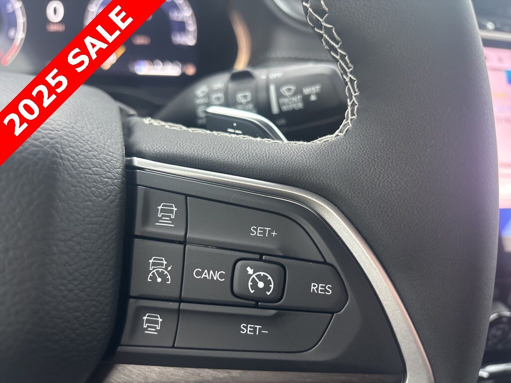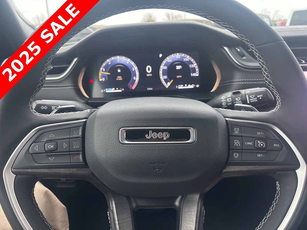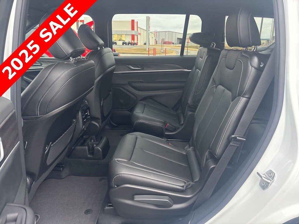 Pricing excludes tax, tag, license fees, dealers $129 doc fee, $1,995 in dealer addendum. See dealer for exact pricing. Some discounts require dealership to arrange financing, price not available with 0% or incentivized rates. See dealer for details. This 2025 Jeep Grand Cherokee L comes equipped with these features Quick Order Package 23E (DISC), 3.45 Rear Axle Ratio, 3rd row seats: split-bench, 4-Wheel Disc Brakes, 6 Speakers, ABS brakes, Active Noise Control System, Air Conditioning, Alloy wheels, AM/FM radio: SiriusXM with 360L, Anti-whiplash front head restraints, Audio memory, Auto High-beam Headlights, Automatic temperature control, Brake assist, Bumpers: body-color, Capri Leatherette Seats, Compass, Delay-off headlights, Driver door bin, Driver vanity mirror, Dual front impact airbags, Dual front side impact airbags, Electronic Stability Control, Emergency communication system, Four wheel independent suspension, Front anti-roll bar, Front Bucket Seats, Front Center Armrest w/Storage, Front dual zone A/C, Front fog lights, Front reading lights, Fully automatic headlights, Garage door transmitter, Heated door mirrors, Heated front seats, Heated rear seats, Heated steering wheel, Illuminated entry, Knee airbag, Low tire pressure warning, Manual Fold Seatbacks, Memory seat, Model Year Tracking, Navigation System, Normal Duty Suspension, Occupant sensing airbag, Outside temperature display, Overhead airbag, Overhead console, Panic alarm, ParkView Rear Back-Up Camera, Passenger door bin, Passenger vanity mirror, Power door mirrors, Power driver seat, Power Liftgate, Power passenger seat, Power steering, Power windows, Radio data system, Radio: Uconnect 5 Nav w/10.1" Display, Rear air conditioning, Rear anti-roll bar, Rear reading lights, Rear window defroster, Rear window wiper, Reclining 3rd row seat, Remote keyless entry, Security system, Speed control, Speed-Sensitive Wipers, Split folding rear seat, Spoiler, Steering wheel mounted audio controls, Tachometer, Telescoping steering wheel, Tilt steering wheel, Traction control, Trip computer, Turn signal indicator mirrors, Variably intermittent wipers, Voltmeter, and Wheels: 18" x 8.0" Polished/Painted Aluminum.
