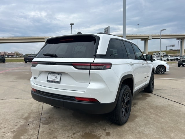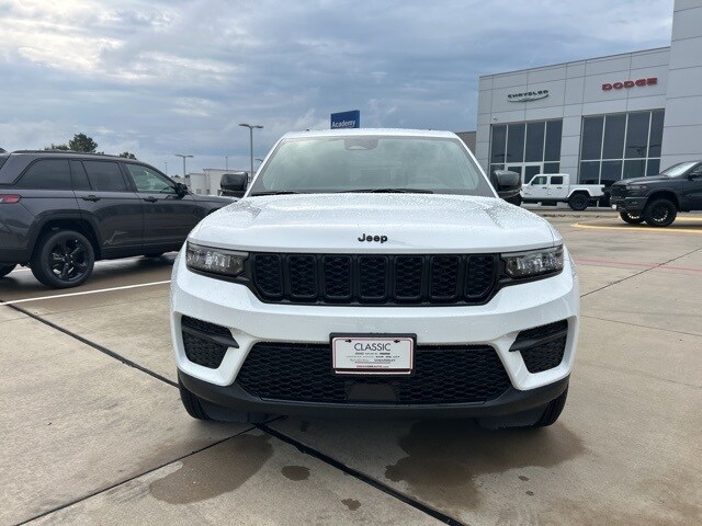 Classic CDJR in Texarkana is proud to offer this fantastic-looking 2025 Jeep Grand Cherokee in Bright White Clearcoat. This 2025 Jeep Grand Cherokee comes with the following features; Quick Order Package 23M Altitude X (115V Auxiliary Power Outlet, Altitude X, Black Headliner, Capri Leatherette/Suede Seats, Delete Laredo Badge, Gloss Black Exterior Accents, Heated Front Seats, Heated Steering Wheel, Power Liftgate, Power Sunroof, Rain Sensitive Windshield Wipers, Remote Start System, Selectable Tire Fill Alert, Wheels: 18" x 8" Fully Painted Aluminum 1, and Wireless Charging Pad), Trailer Tow Package (180 Amp Alternator, 7 & 4-Pin Wiring Harness, Automatic Headlamp Levelling System, Class IV Receiver Hitch, Heavy-Duty Engine Cooling, Rear Load Levelling Suspension, and Trailer Hitch Zoom), 4WD, 4-Wheel Disc Brakes, 6 Speakers, ABS brakes, Air Conditioning, Alloy wheels, AM/FM radio: SiriusXM, Anti-whiplash front head restraints, Automatic temperature control, Brake assist, Bumpers: body-color, Cloth Seats, Compass, Delay-off headlights, Driver door bin, Driver vanity mirror, Dual front impact airbags, Dual front side impact airbags, Electronic Stability Control, Emergency communication system, Four wheel independent suspension, Front anti-roll bar, Front Bucket Seats, Front Center Armrest w/Storage, Front dual zone A/C, Front License Plate Bracket, Front reading lights, Fully automatic headlights, Heated door mirrors, Illuminated entry, Knee airbag, Low tire pressure warning, Model Year Tracking, Normal Duty Suspension, Occupant sensing airbag, Outside temperature display, Overhead airbag, Overhead console, Panic alarm, ParkView Rear Back-Up Camera, Passenger door bin, Passenger vanity mirror, Power door mirrors, Power driver seat, Power steering, Power windows, Radio data system, Radio: Uconnect 5 w/8.4" Display, Rear anti-roll bar, Rear reading lights, Rear window defroster, Rear window wiper, Remote keyless entry, Security system, Speed control, Speed-Sensitive Wipers, Split folding rear seat, Spoiler, Steering wheel mounted audio controls, Tachometer, Telescoping steering wheel, Tilt steering wheel, Traction control, Trip computer, Variably intermittent wipers, Voltmeter, and Wheels: 17" x 6.5" Fully Painted Aluminum. 4WD.